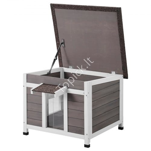 - Aiškus vaizdas: Katės gali lengvai stebėti aplinką per akrilo langą šone. Nuimami PVC durų atvartai žiemą apsaugo nuo vėjo ir lietaus, o vasarą lengvai nuimami, todėl laukinių kačių prieglauda yra jauki ir funkcionali.