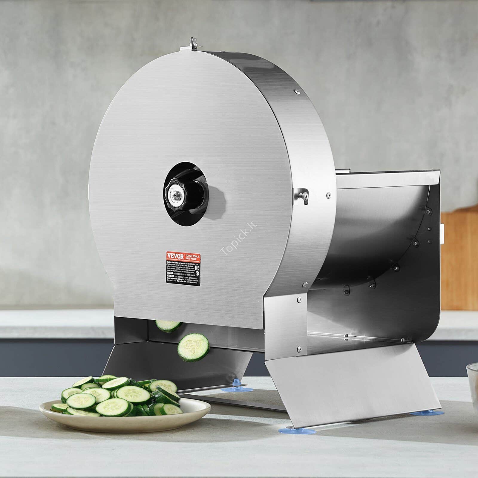 🥒 Elektrinis daržovių pjaustytuvas – komercinis, 0–12 mm reguliuojamas pjovimo storis, nerūdijantis plienas, plati pildymo anga