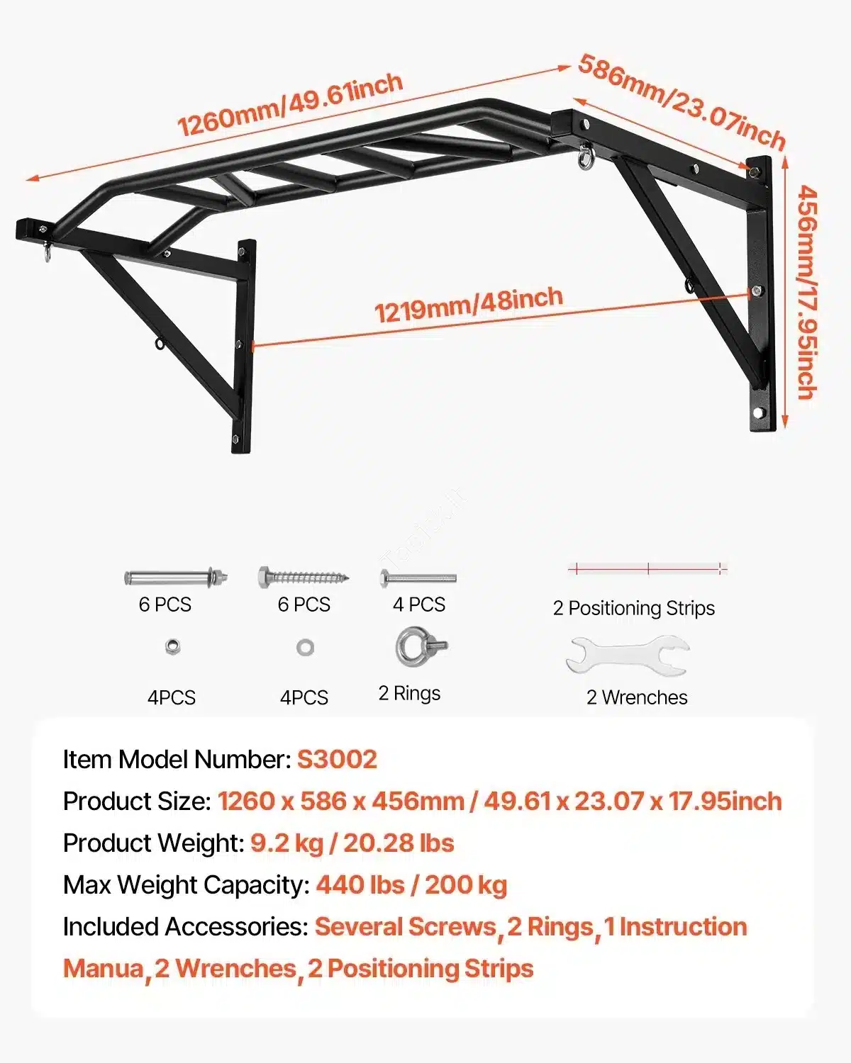 - Maksimali Apkrova: 200 kg (440 lbs).