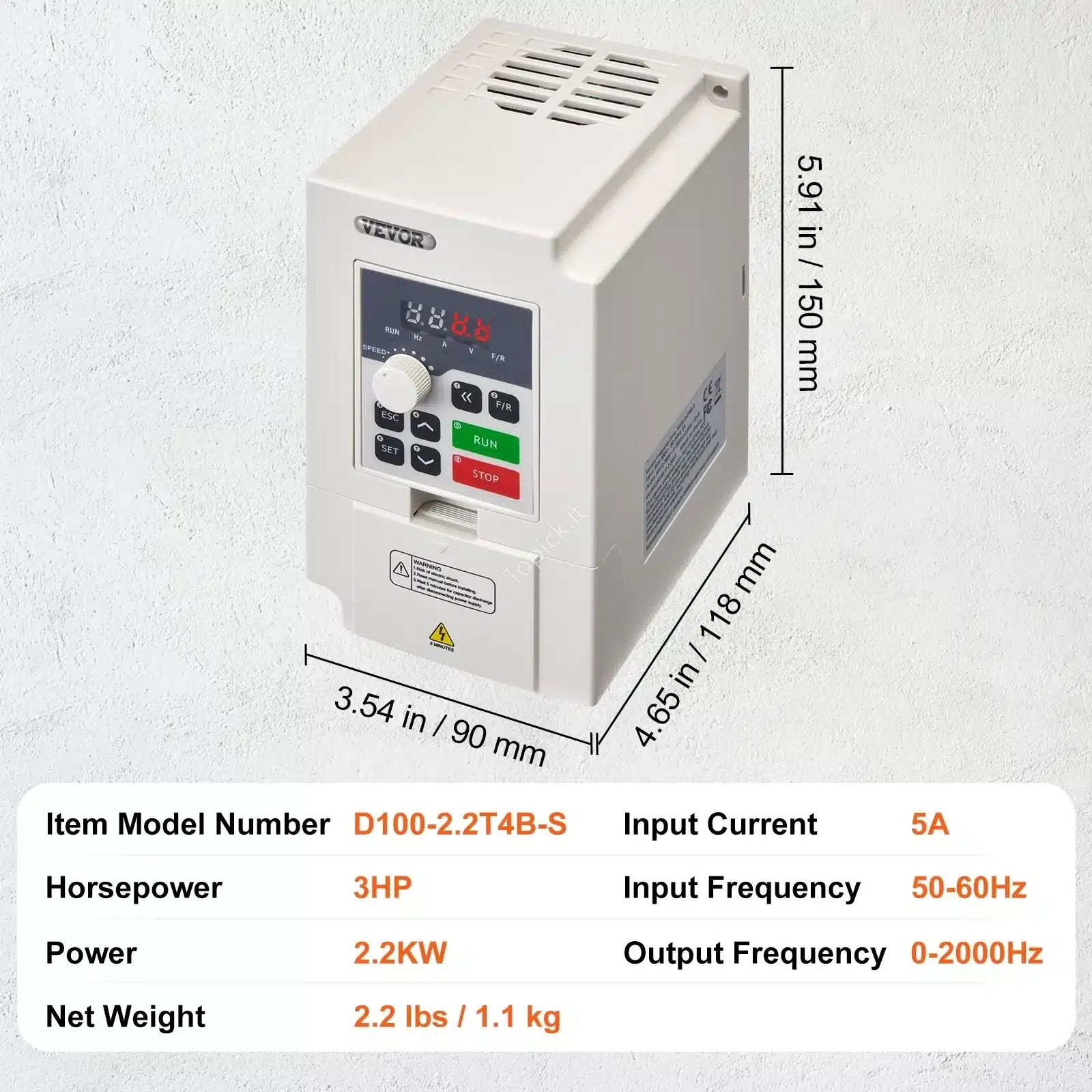 Dažnių keitiklis VFD, 2.2 kW / 3 fazės ⚙️