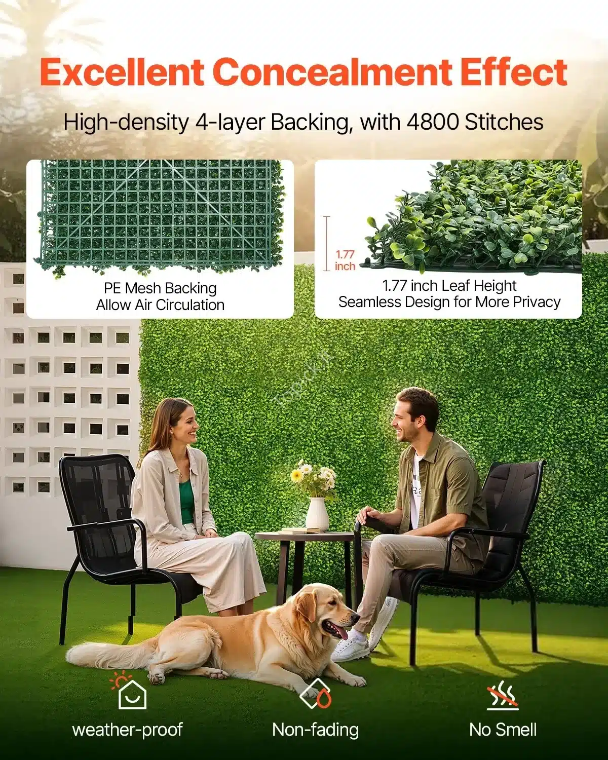 🌿 Sukurkite žalią ir jaukią aplinką savo terasoje, sode ar balkone su šia dirbtinių augalų siena. Ši 3 x 1 m dydžio siena puikiai tinka tiek vidaus, tiek lauko erdvėms.