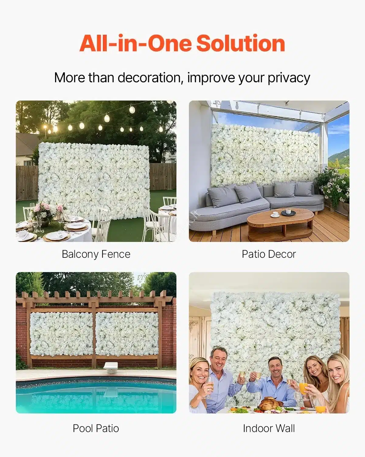 Suteikite savo erdvei natūralumo, privatumo ir stiliaus su šiuo aukštos kokybės dirbtinės augmenijos sienelių rinkiniu. 24 panelės lengvai jungiasi tarpusavyje, sukurdamos vientisą, tankią ir realistišką augalų sieną tiek lauko, tiek vidaus erdvėse.
