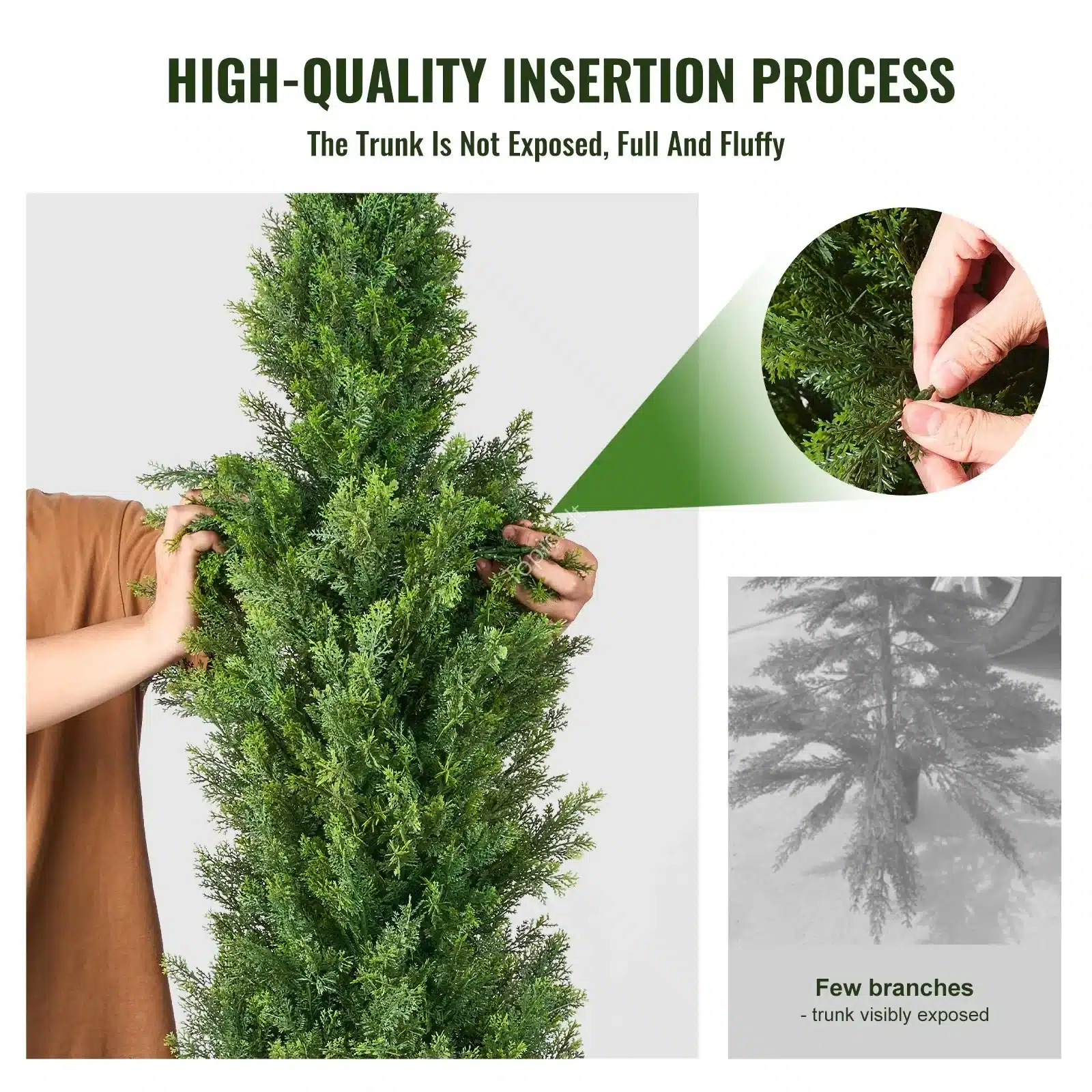- Tankūs lapai: medeliai sukurti taip, kad atrodytų vešlūs ir tankūs iš visų pusių.