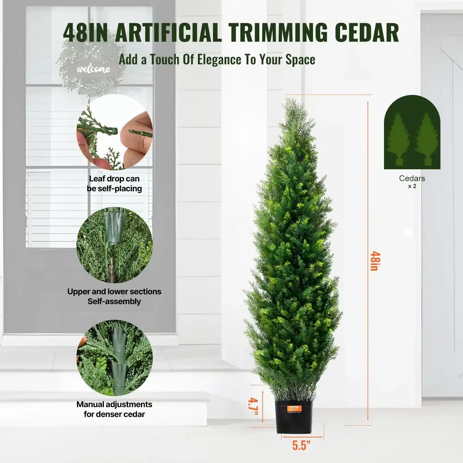 Ieškote elegantiškos ir ilgaamžės apželdinimo idėjos? 🌲 Šis dirbtinių tujų medelių komplektas puikiai tinka tiek lauko, tiek vidaus erdvėms dekoruoti. Šie medeliai atrodo itin realistiškai, tačiau nereikalauja jokios priežiūros! ✨