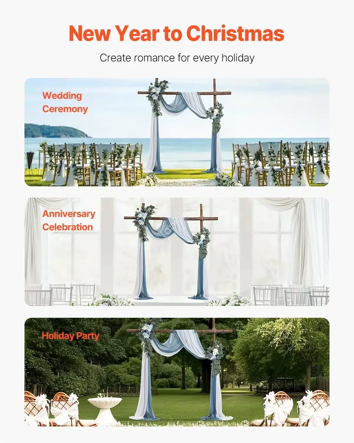 Sukurkite elegantišką ir šventišką atmosferą savo ypatingai dienai su šiuo dirbtiniu vestuvių arkos komplektu, kuris apima viską, ko reikia, kad jūsų ceremonija būtų nepamirštama. Puikiai tinka vestuvėms, sužadėtuvėms, metinėms ar gimtadieniams.