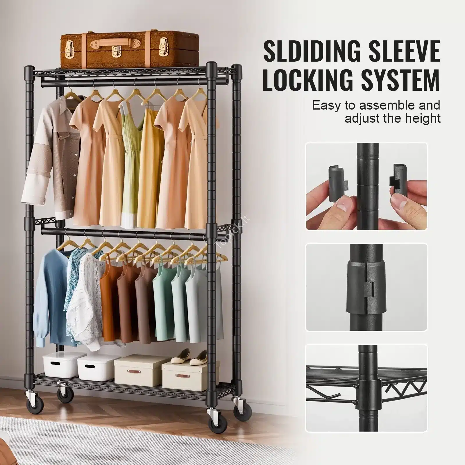 🔧 Praktiškas, elegantiškas ir universalus – šis mobilus drabužių stovas taps nepakeičiama organizacinės erdvės dalimi tiek profesionalams, tiek namuose!