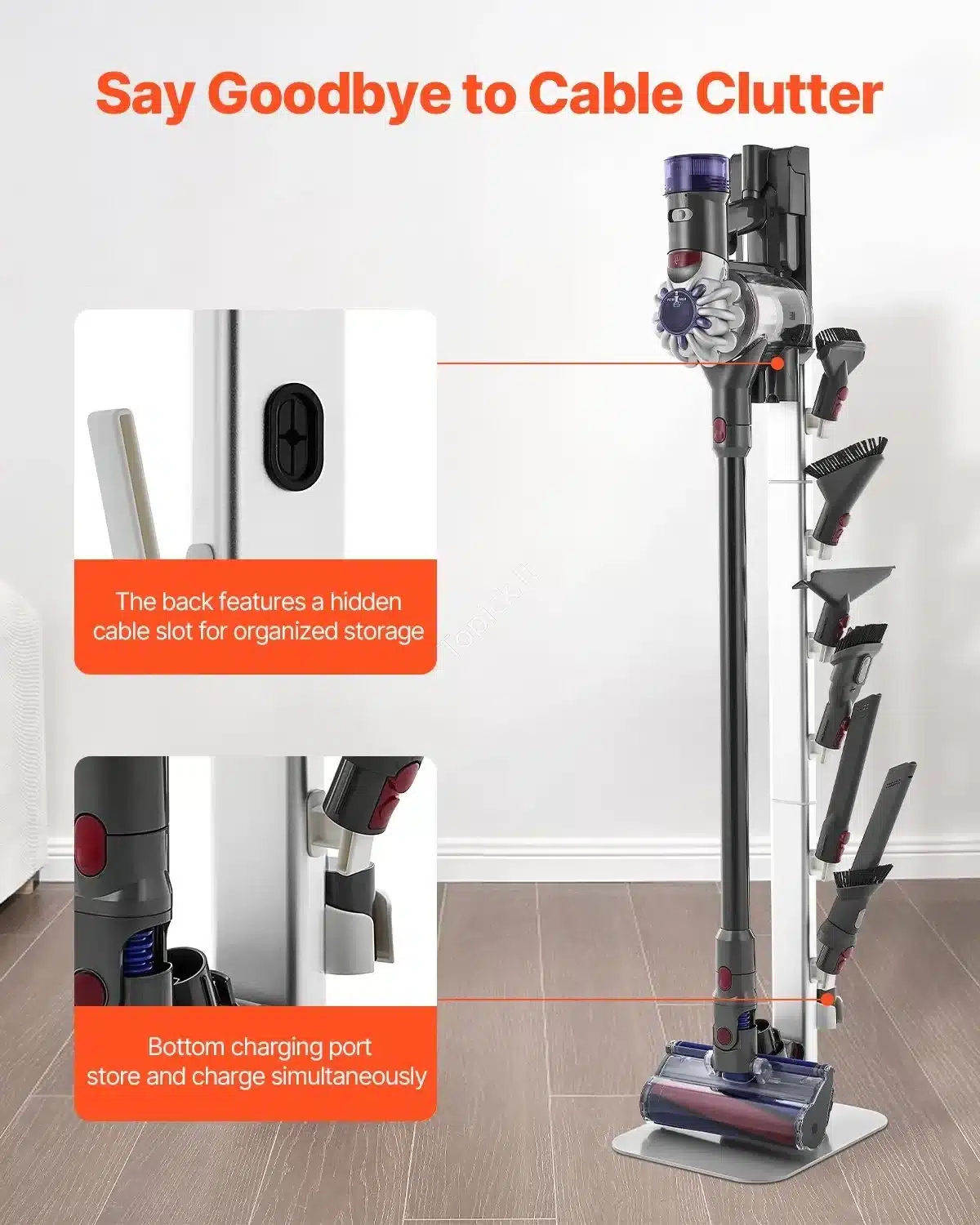 Sukurkite tvarką savo namuose be jokių pastangų! Šis elegantiškas dulkių siurblio stovas – idealus sprendimas norint patogiai laikyti savo belaidį siurblį ir visus jo priedus. Jis tvirtai stovi ant žemės, todėl nereikės gręžti sienų ir galėsite pastatyti bet kurioje patogioje vietoje.