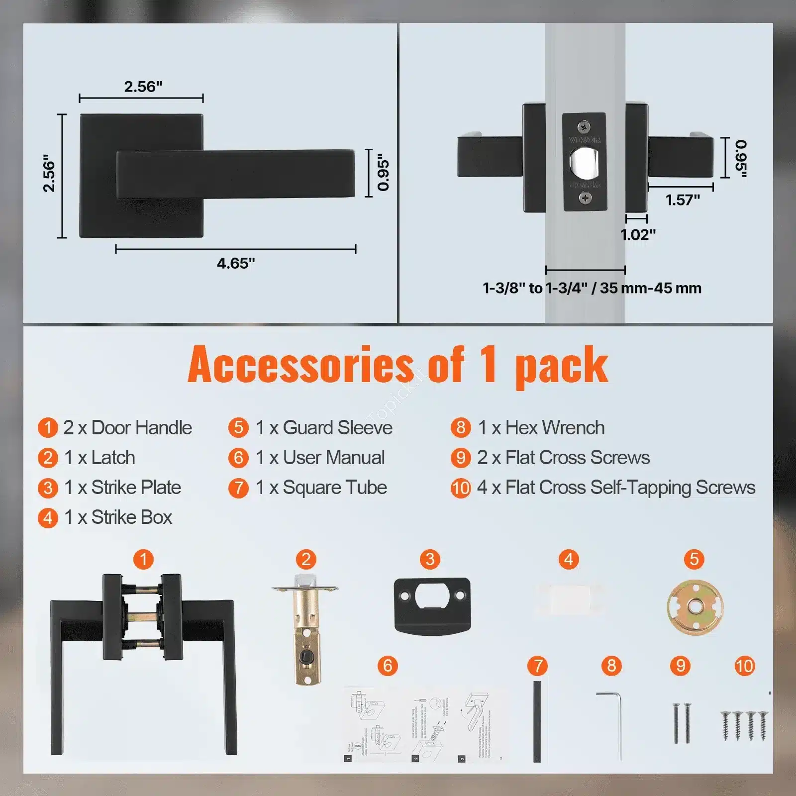 - Universalumas: Rankena tinka tiek kairinėms, tiek dešininėms durims, kurių storis nuo 35 mm iki 45 mm.