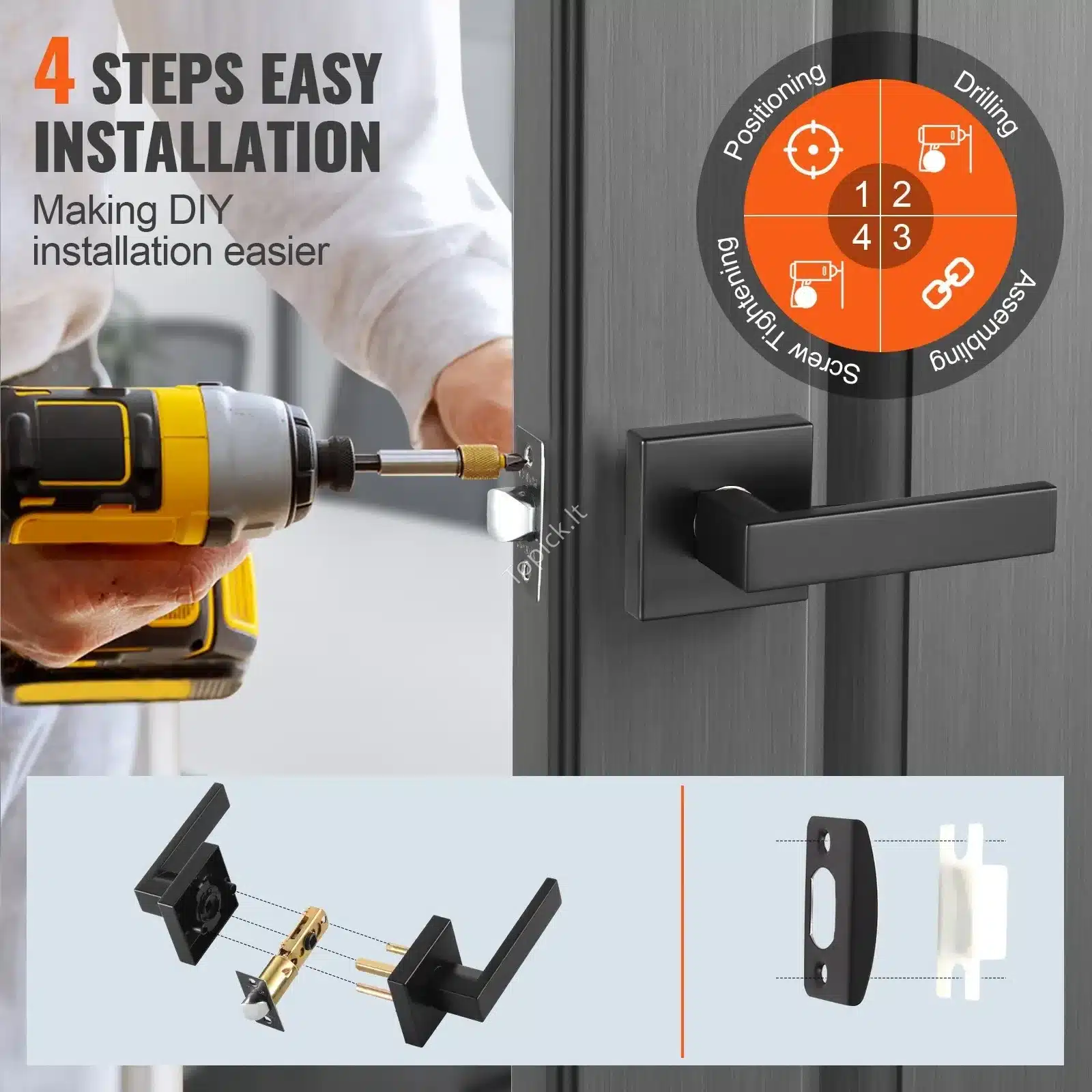 - Universalumas: Rankena tinka tiek kairinėms, tiek dešininėms durims, kurių storis nuo 35 mm iki 45 mm.