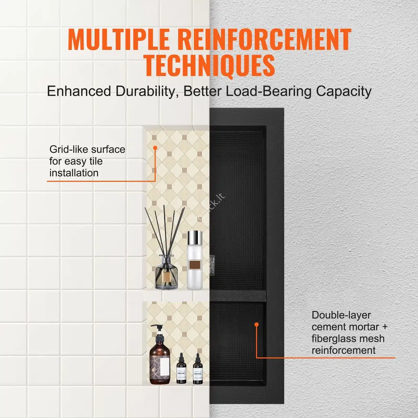 Ieškote stilingo ir praktiško sprendimo vonios kambariui? Ši dviejų lygių sieninė niša puikiai tinka! Pagaminta iš XPS plastiko su vandeniui atspariu pagrindu, ji yra atspari puvimui ir tvirta.