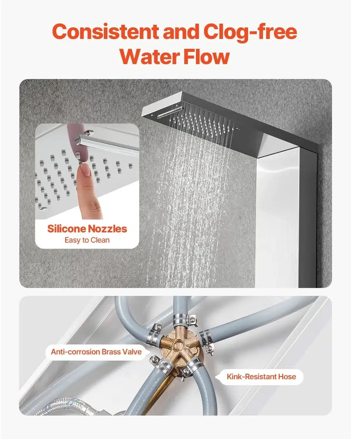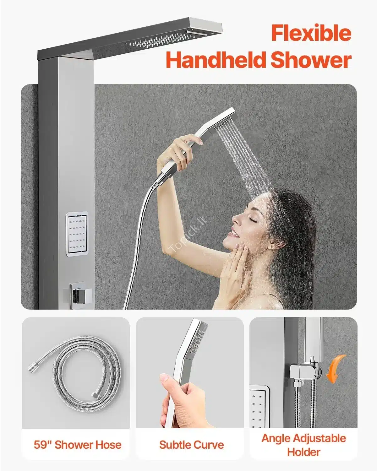Sukurkite savo vonios oazę su šia modernia ir funkcionalia dušo panele! Elegantiška ir stilinga, ši dušo sistema paverčia kasdienį dušą tikra atsipalaidavimo procedūra. 🛁