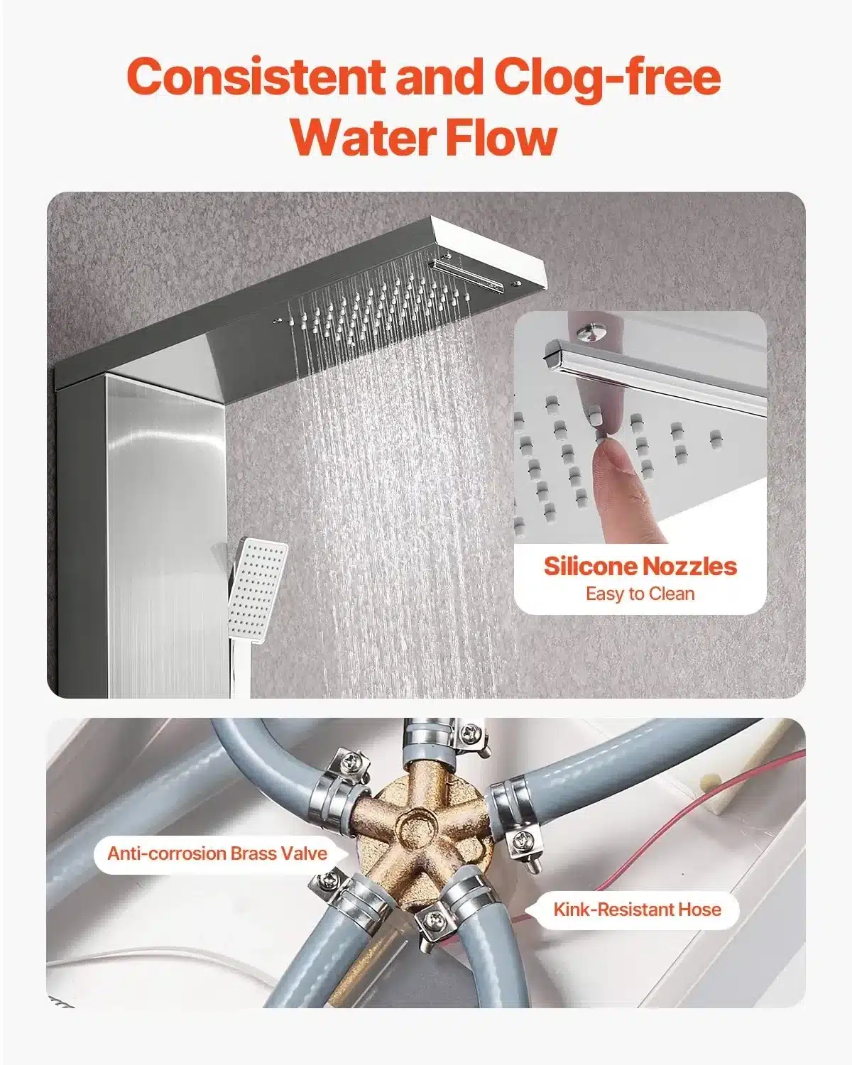Sukurkite savo vonios oazę su šia modernia ir funkcionalia dušo panele! Elegantiška ir stilinga, ši dušo sistema paverčia kasdienį dušą tikra atsipalaidavimo procedūra. 🛁