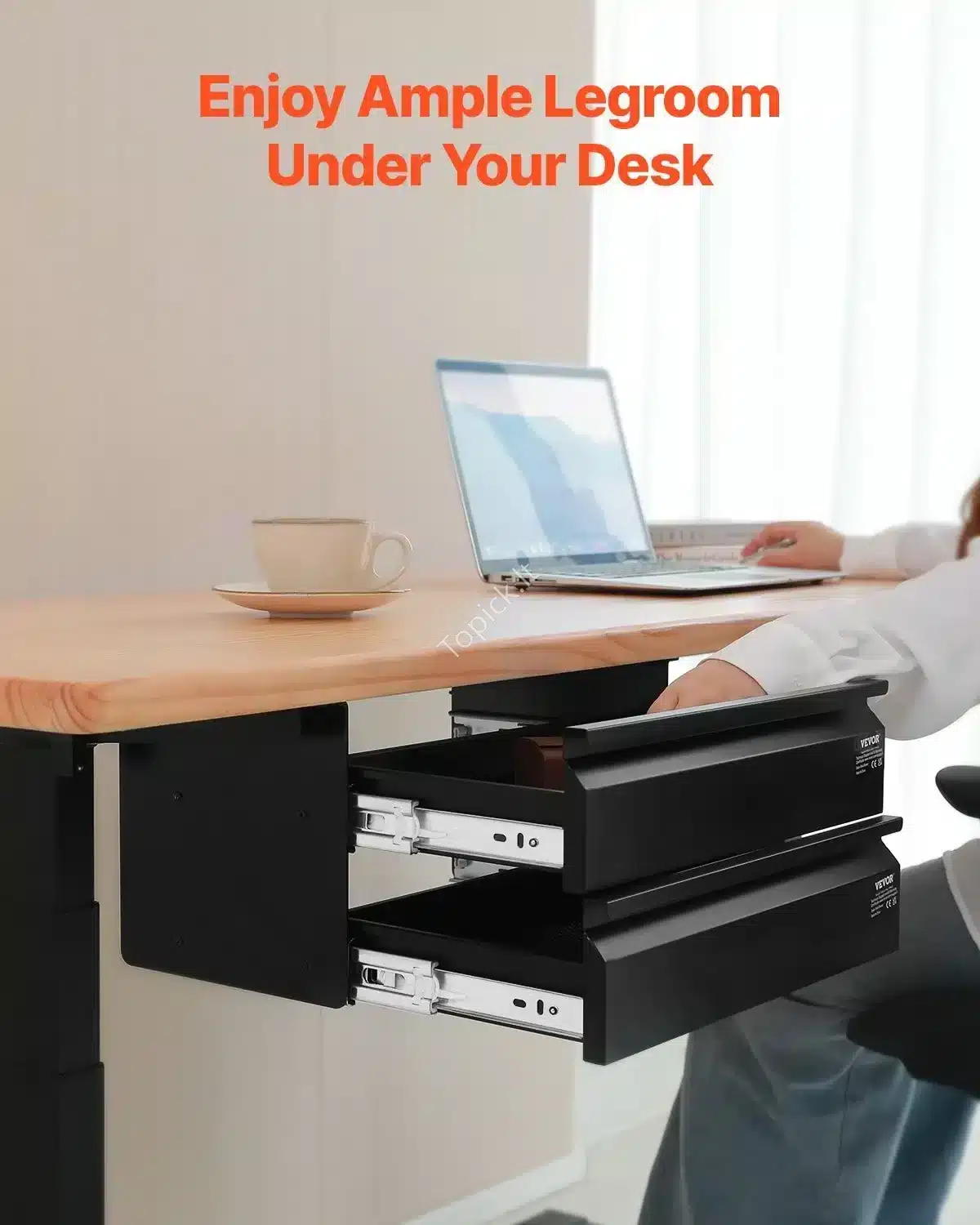 - Maksimalus Komfortas: Stalčiaus aukštis (bendras: 200 mm) sukurtas taip, kad tavo kojoms liktų pakankamai vietos. Išsitrauk ir dirbk patogiai, net ir prie reguliuojamo aukščio stalo.