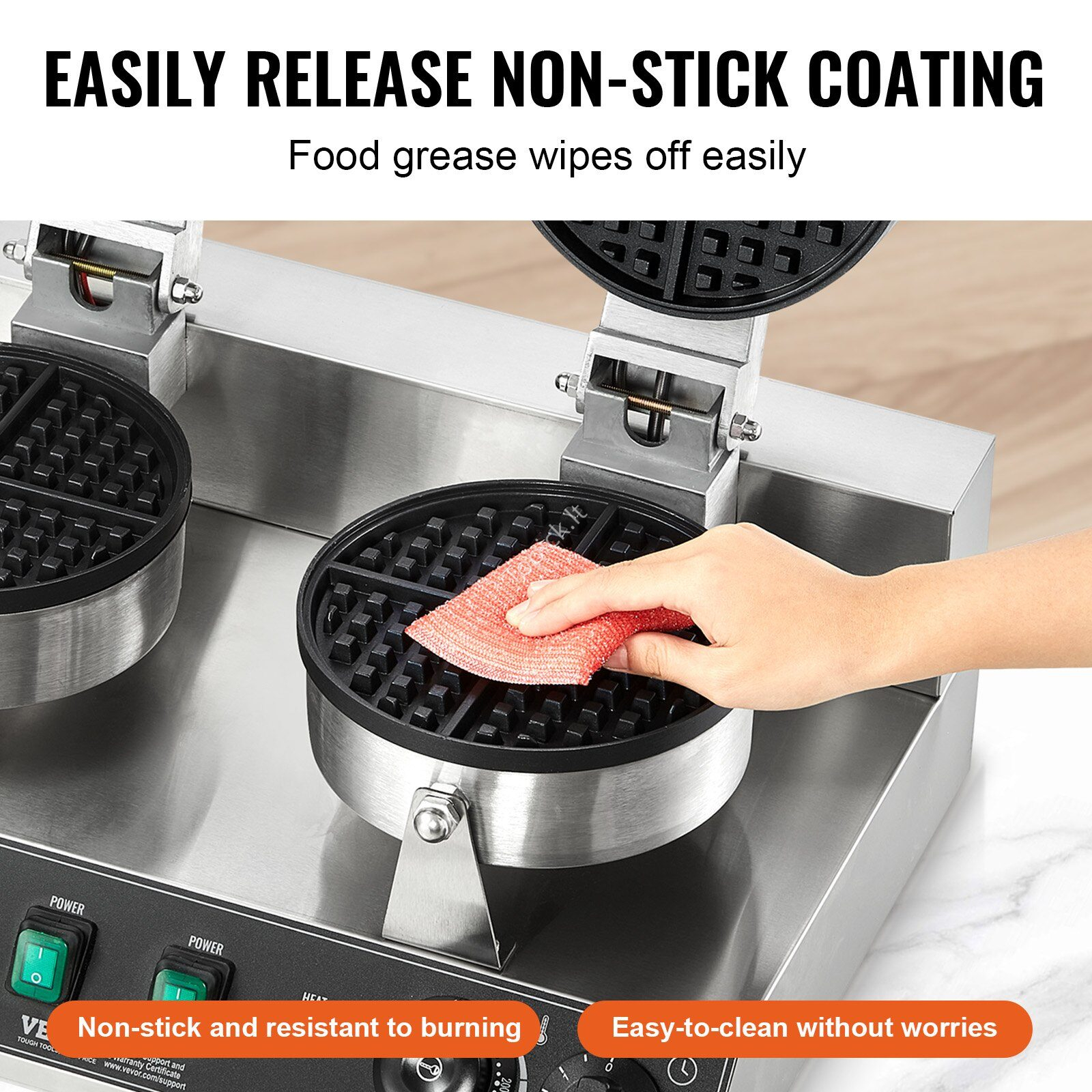 Dvigubos galvutės apvali vaflinė, 2460 W, neprilimpanti.