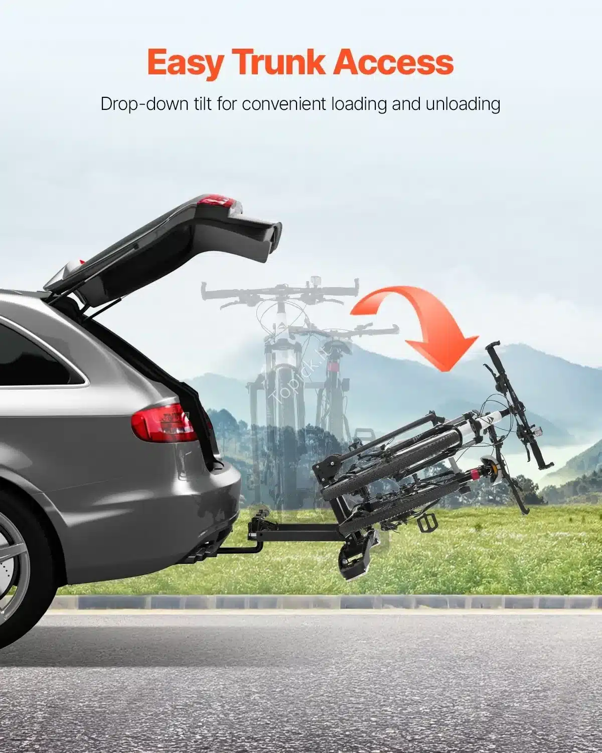 - Patogumas: Yra nuverčiama funkcija, leidžianti pasiekti automobilio bagažinę nenuimant dviračių.