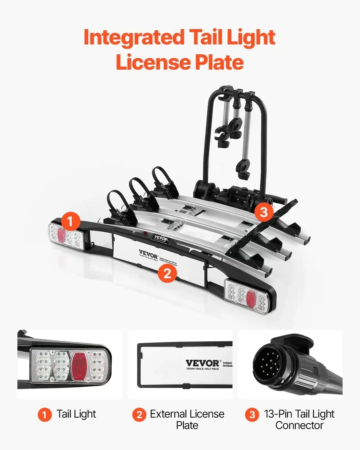 - Saugumas: Integruotas galinis žibintas ir 13 kontaktų jungtis užtikrina gerą matomumą ir atitinka visus eismo reikalavimus.