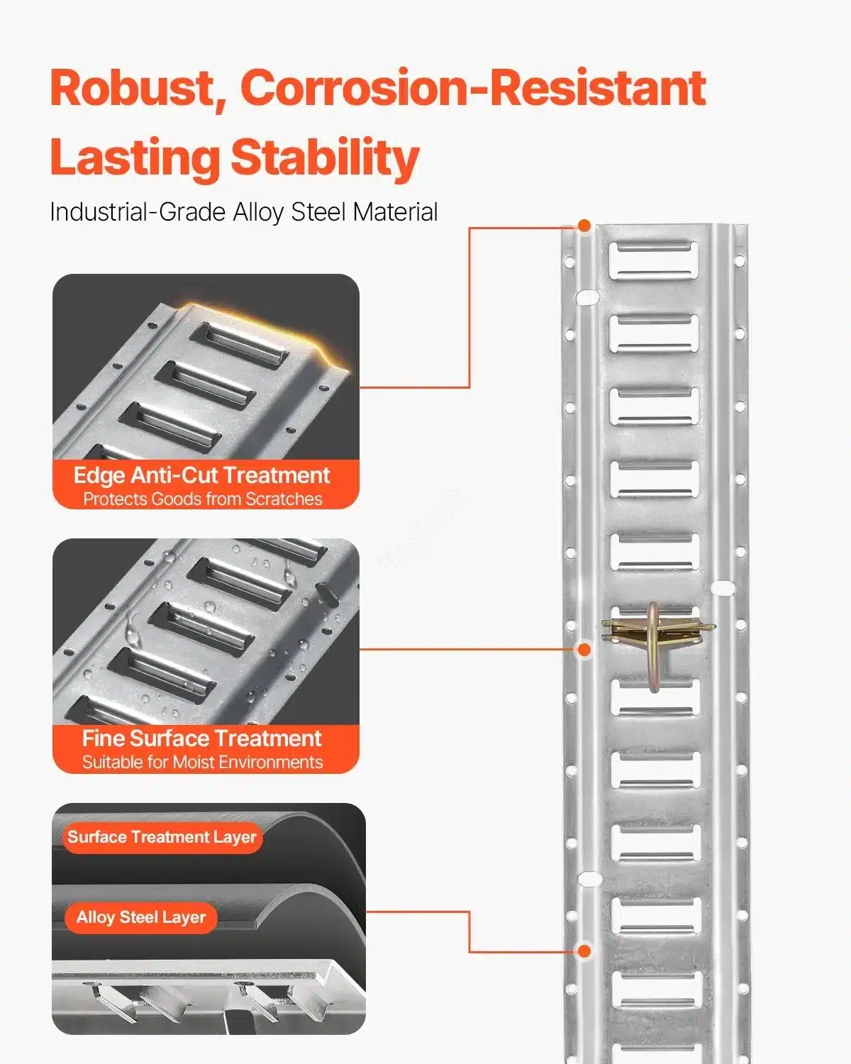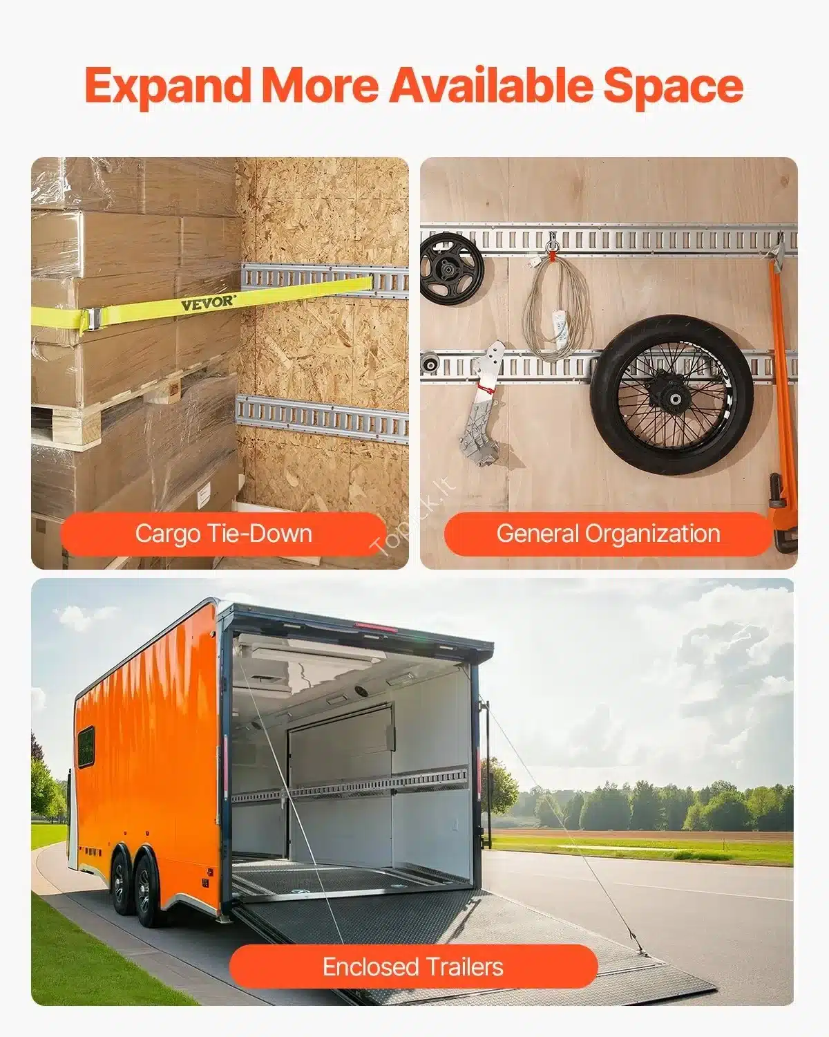 Patikimi tvirtinimo bėgiai sunkvežimiams ir priekaboms – puikus sprendimas krovinio saugumui užtikrinti. Pagaminti iš aukštos kokybės aliuminio, sidabrinės spalvos, šie bėgiai išlaiko iki 454 kg apkrovą, leidžia lanksčiai ir tvirtai pritvirtinti krovinius naudojant ratchet diržus ar kitus fiksavimo elementus.
