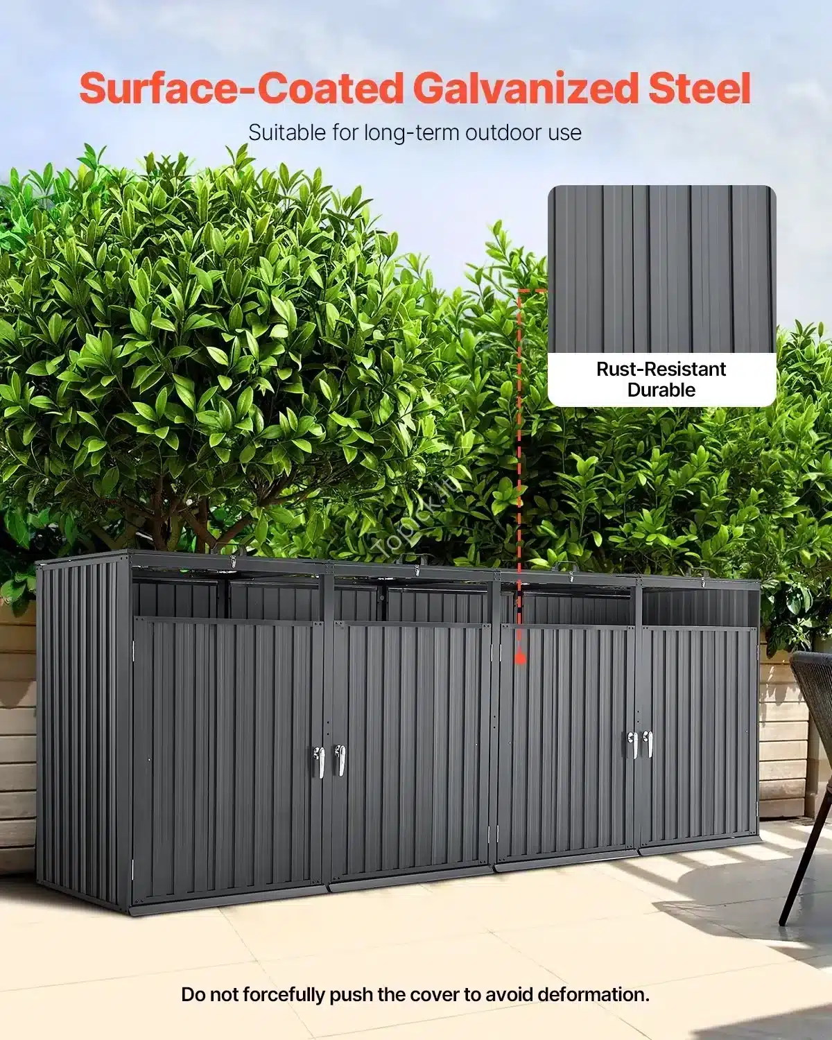 Atsibodo, kai kiemo vaizdą gadina netvarkingos šiukšliadėžės? O gal per naktį konteinerius nuverčia vėjas arba gyvūnai? Ši išvaizdi ir itin talpi šiukšliadėžių slėptuvė yra puikus sprendimas tavo namų ar komercinei aplinkai! Pagaminta iš tvirto metalo, ji paslėps net keturis didelius konteinerius.