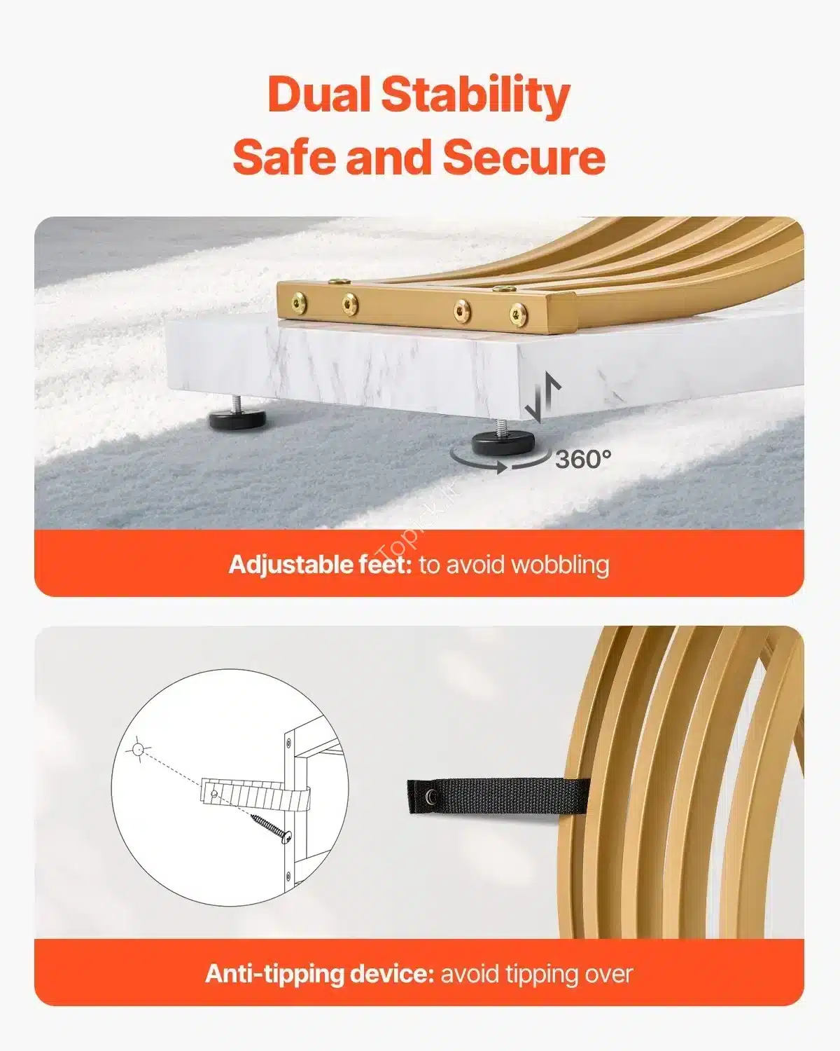 - Atlaiko Daug: Nors atrodo lengvas, stalviršis atlaiko beveik 50 kg (49,9 kg) svorio, tad ant jo galite drąsiai statyti ir sunkesnes dekoracijas.