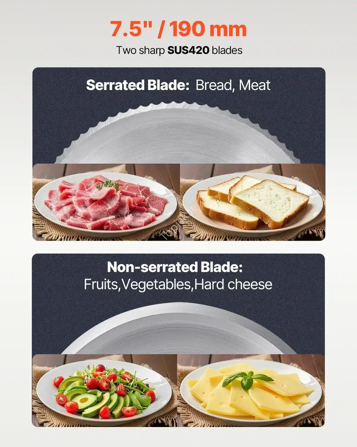 Užtikrina lygų ir nuoseklų pjovimą šviežiai ir šaldytai mėsai, sūriui, duonai bei daržovėms.