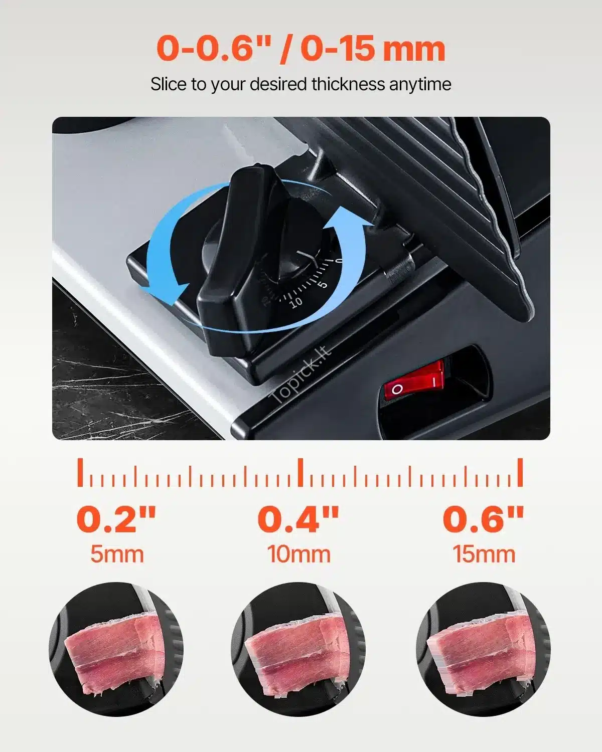 Nuo 0 iki 10 mm, leidžia paruošti plonas plokšteles sumuštiniams, užkandžiams ar garnyrams.
