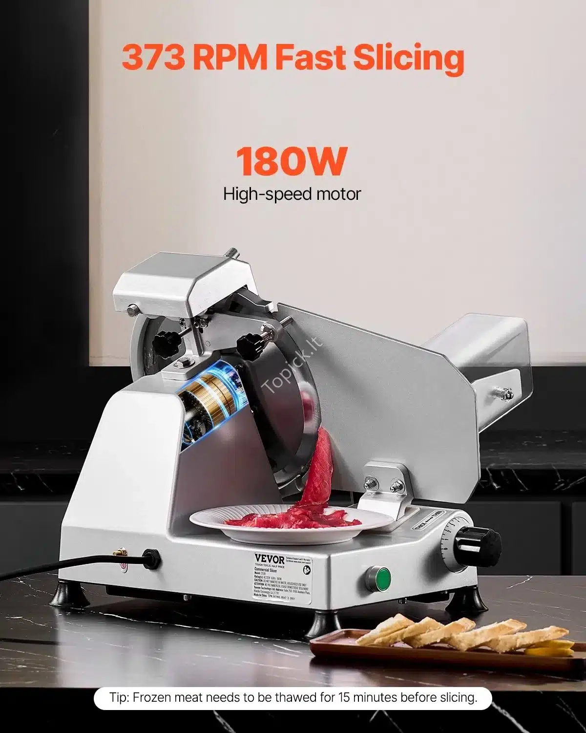 Užtikrina lygų ir nuoseklų pjovimą šviežiai ir šaldytai mėsai, sūriui, duonai bei daržovėms.