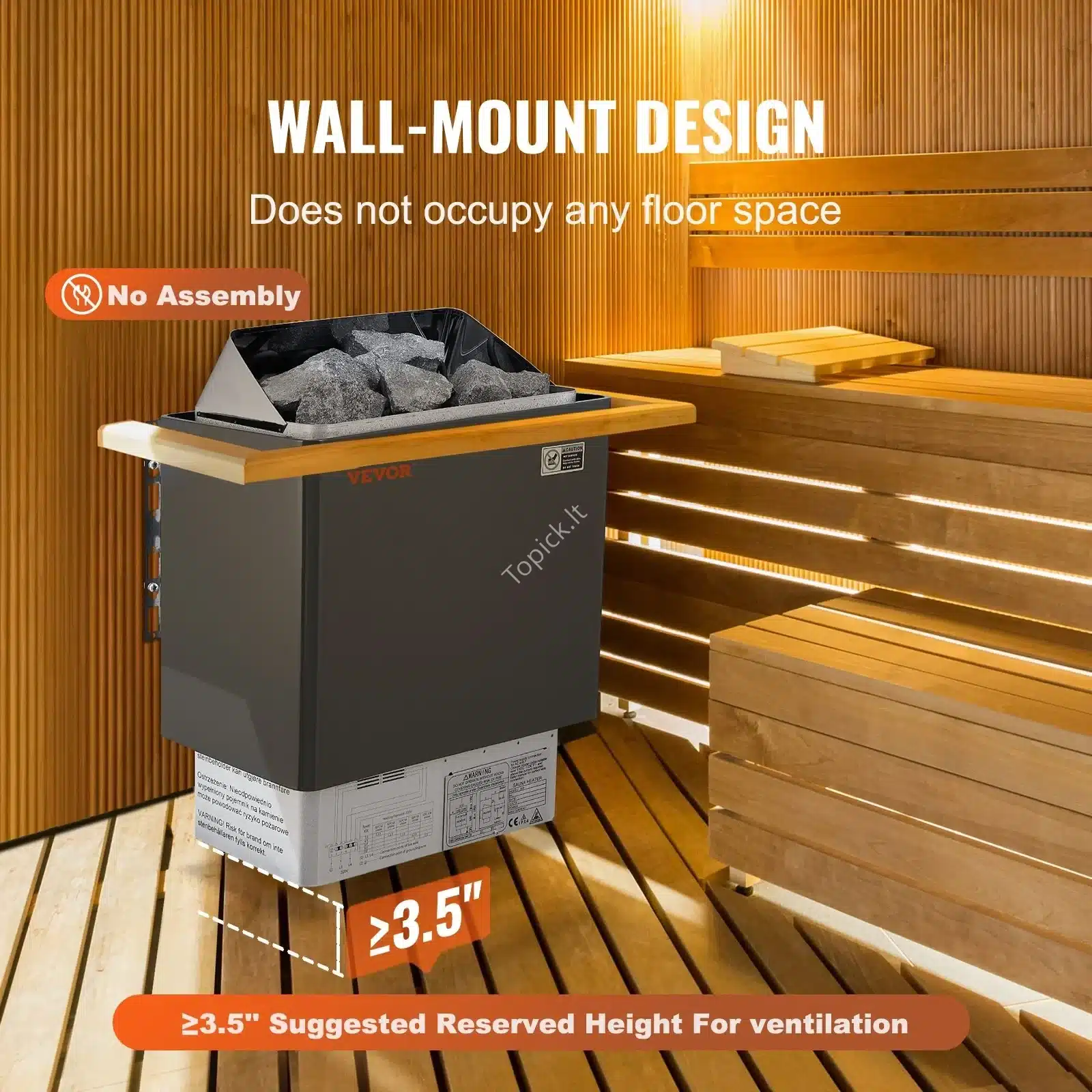 Pastaba: Saunos akmenys nėra įtraukti į komplektaciją ir turi būti įsigyti atskirai.