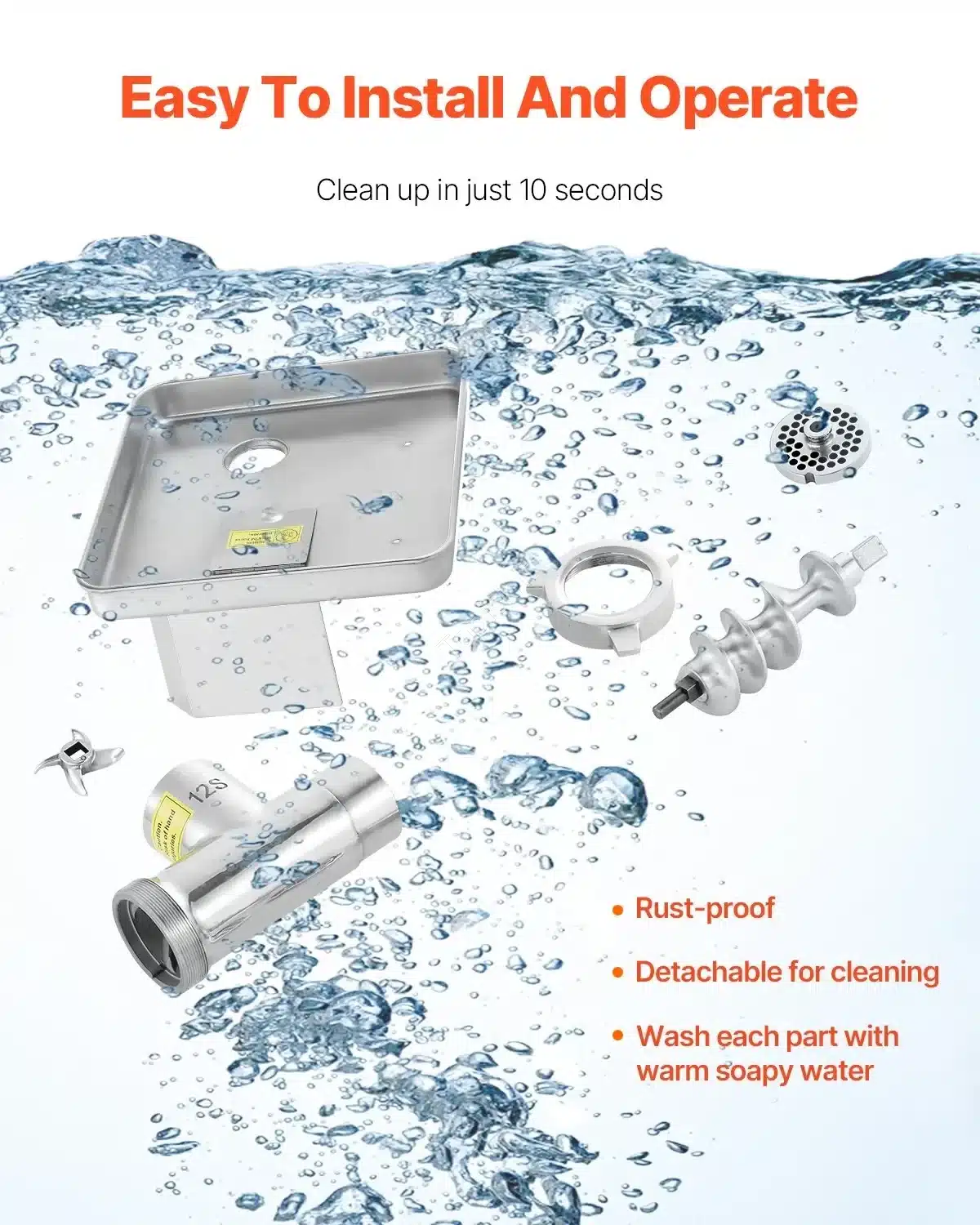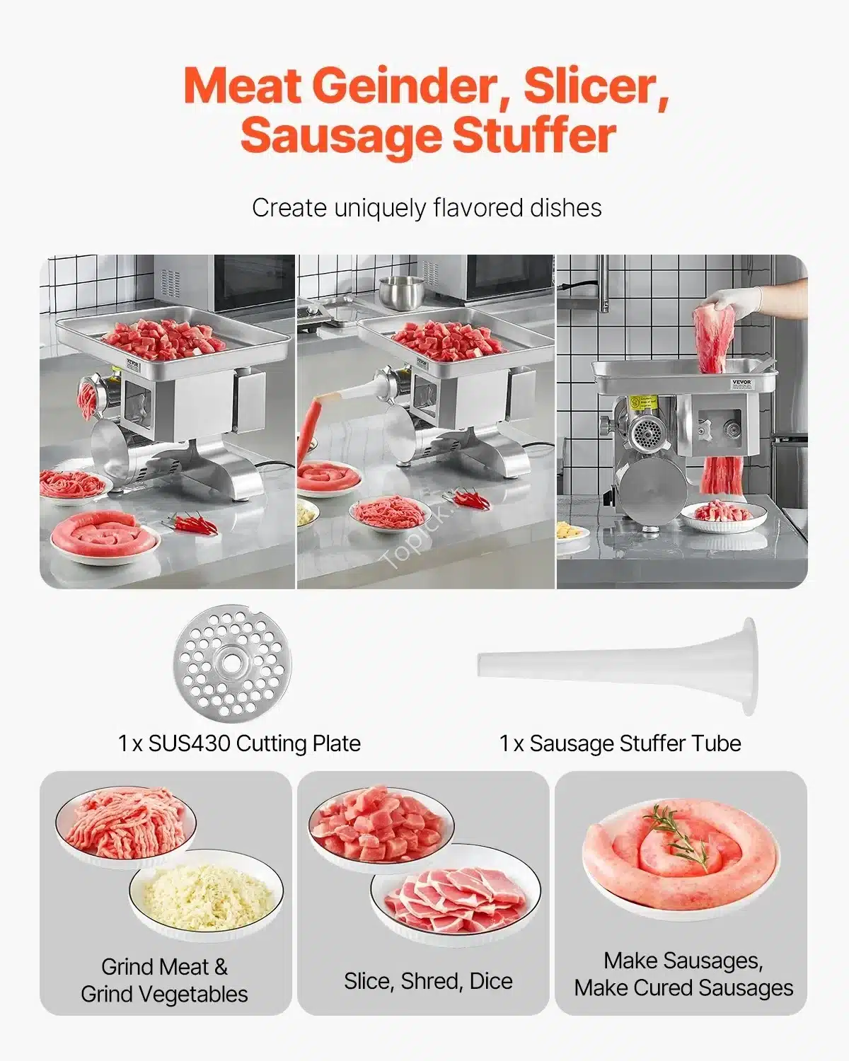 Šis elektrinis mėsos malūnas su dešrų pildymo funkcija yra puikus pasirinkimas tiek profesionaliems mėsos perdirbėjams, tiek mėgėjams, norintiems pasigaminti aukštos kokybės mėsos produktus namuose. Jo galingas variklis užtikrina greitą ir efektyvų darbą, o 3-in-1 funkcija leidžia sutaupyti vietos ir pinigų, nes nereikia įsigyti atskirų įrenginių. Nerūdijančio plieno konstrukcija garantuoja ilgaamžiškumą ir lengvą priežiūrą. Be to, nuimama konstrukcija leidžia patogiai išvalyti visus komponentus po naudojimo, užtikrinant higieną ir ilgesnį įrenginio tarnavimo laiką. 🍽️🔧