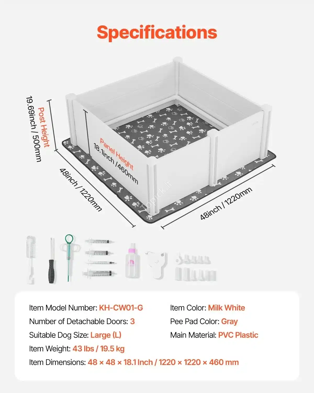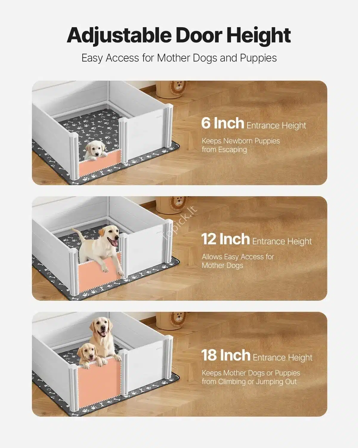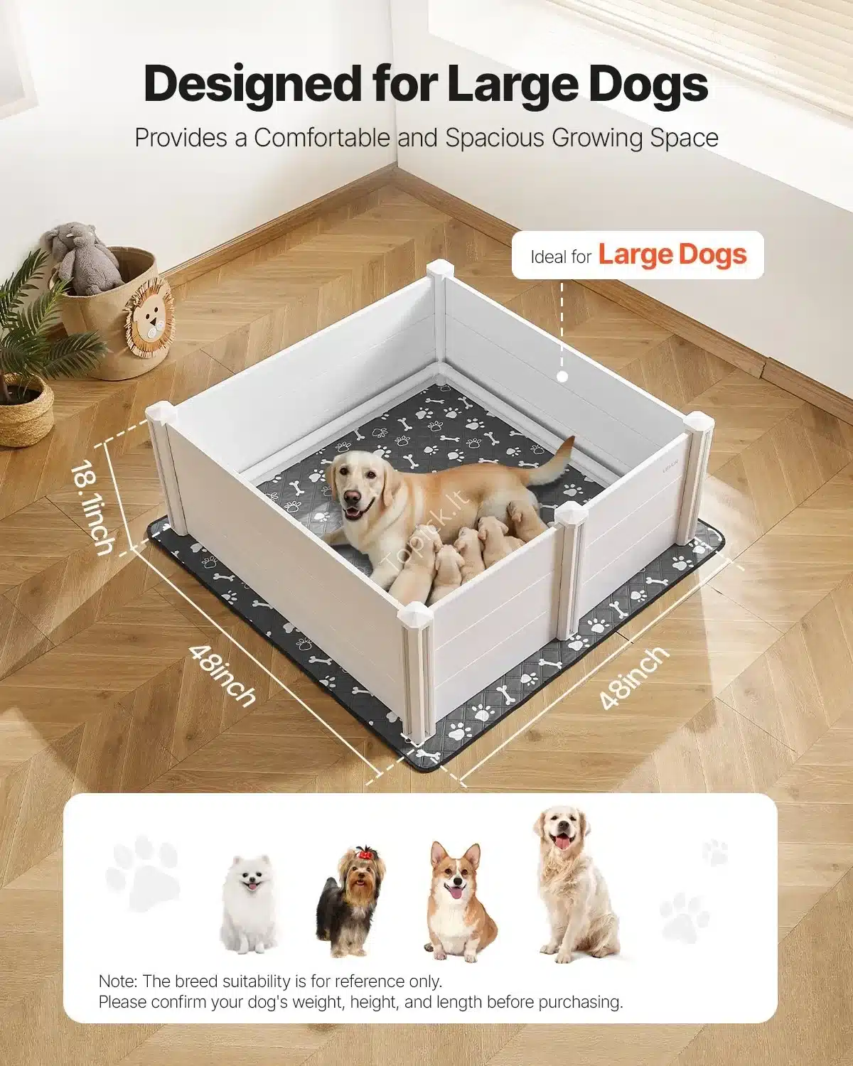 Ši dėžė suteikia šuniukams saugią ir patogią aplinką augti, o šunų šeimininkams – patogumą prižiūrint ir valant.