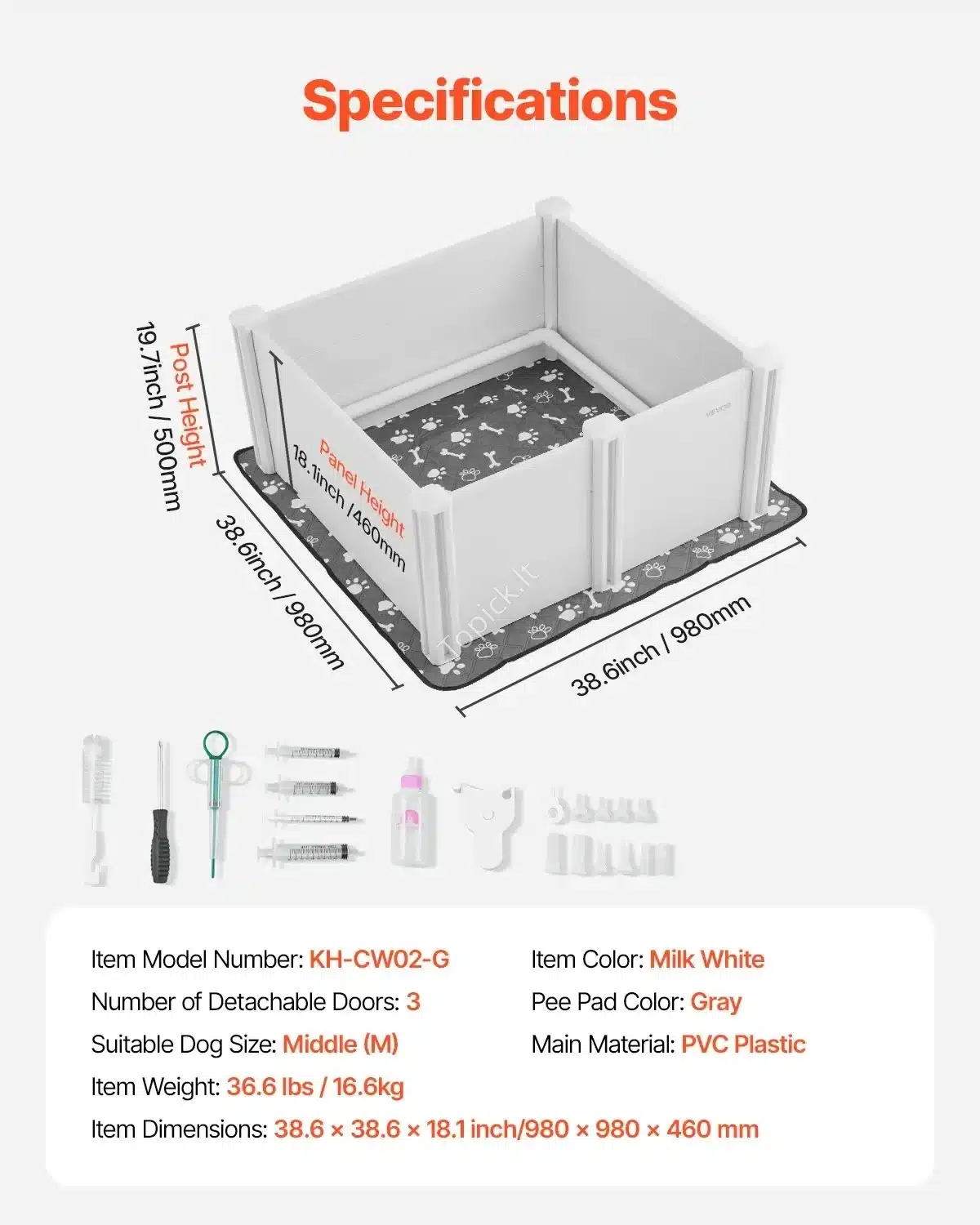 Ši erdvi šuniukų priežiūros dėžė su dviejų zonų išdėstymu – puikus sprendimas jūsų augintinio priežiūrai. Pagaminta iš aukštos kokybės, atsparaus vandeniui PVC, ši dėžė yra lengvai valoma, ilgaamžė ir patvari. Dėl reguliuojamų durų galėsite pritaikyti dėžę pagal šuniukų augimo poreikius. Durys lengvai atidaromos ir uždaromos, užtikrinant patogų prieigą.