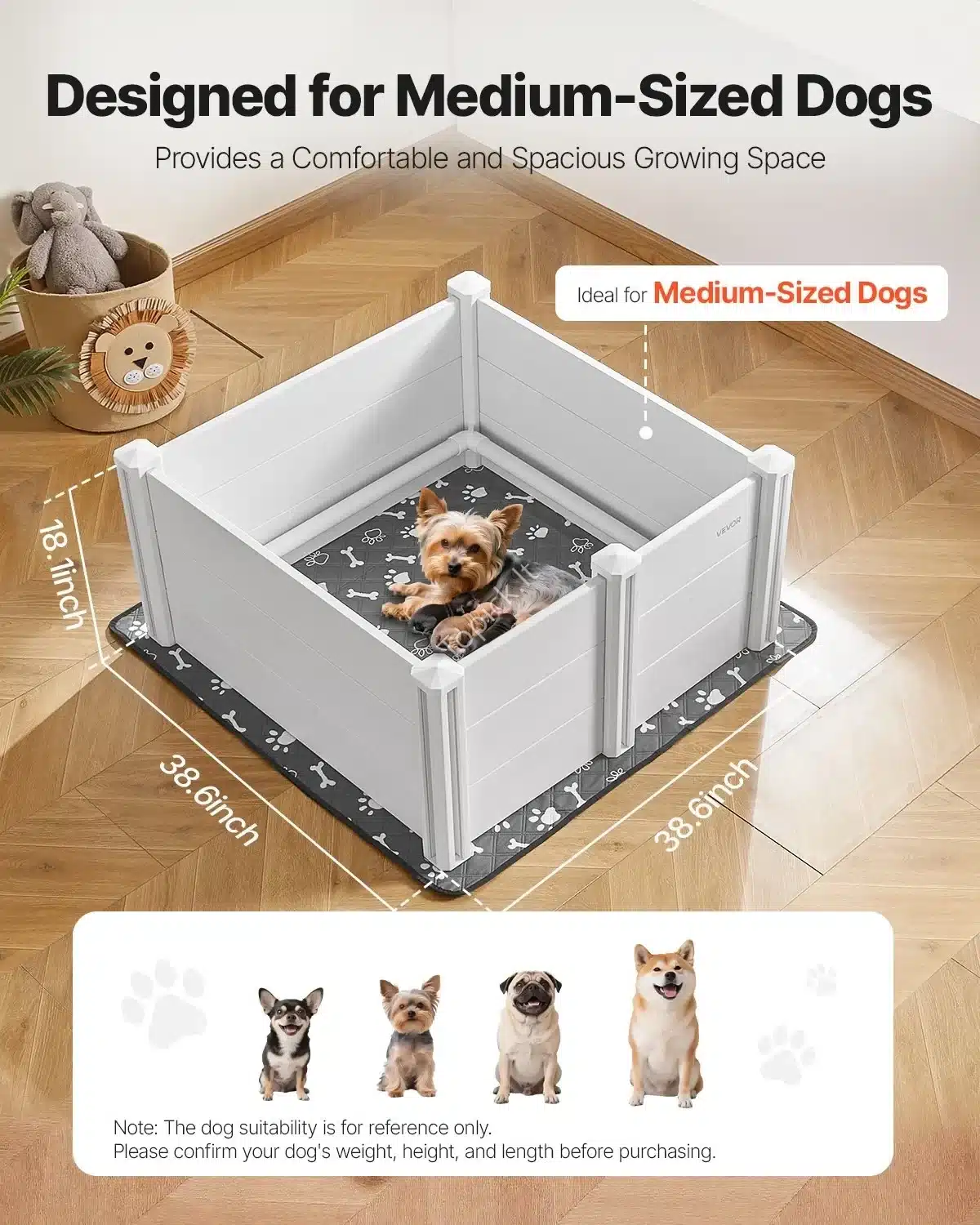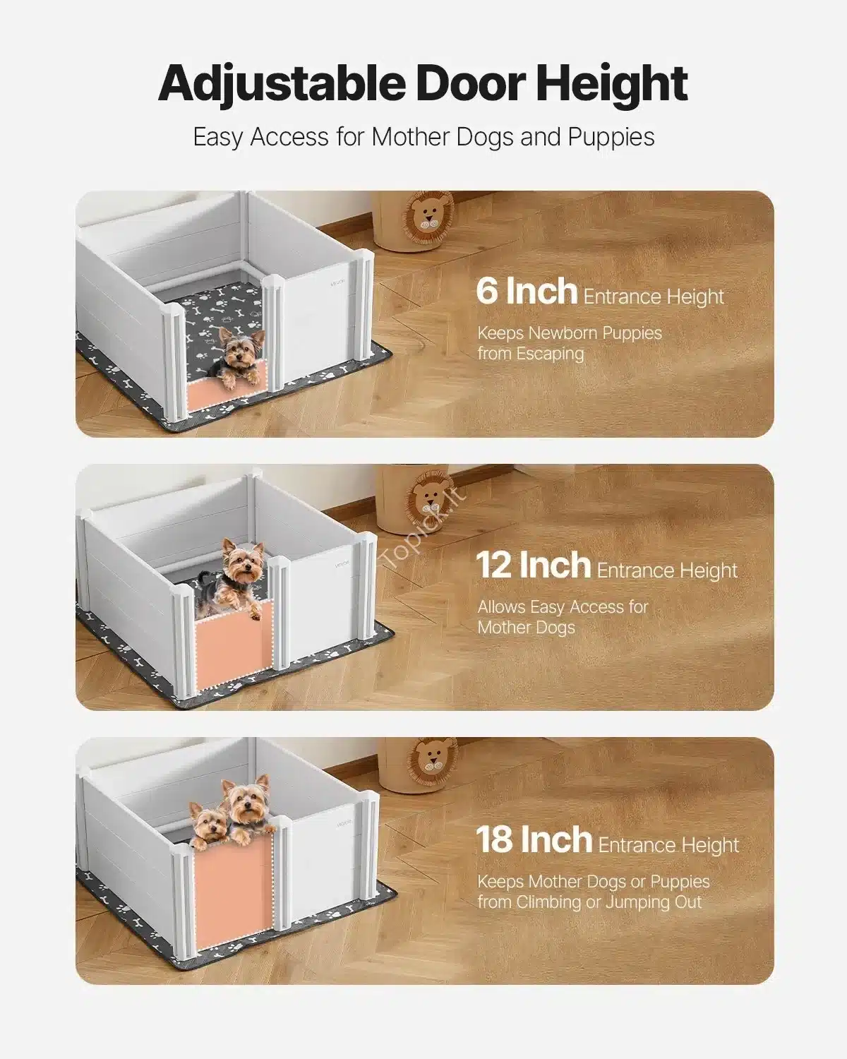 Erdvi šuniukų priežiūros dėžė su reguliuojamomis durimis – 98x98x46 cm 🐾