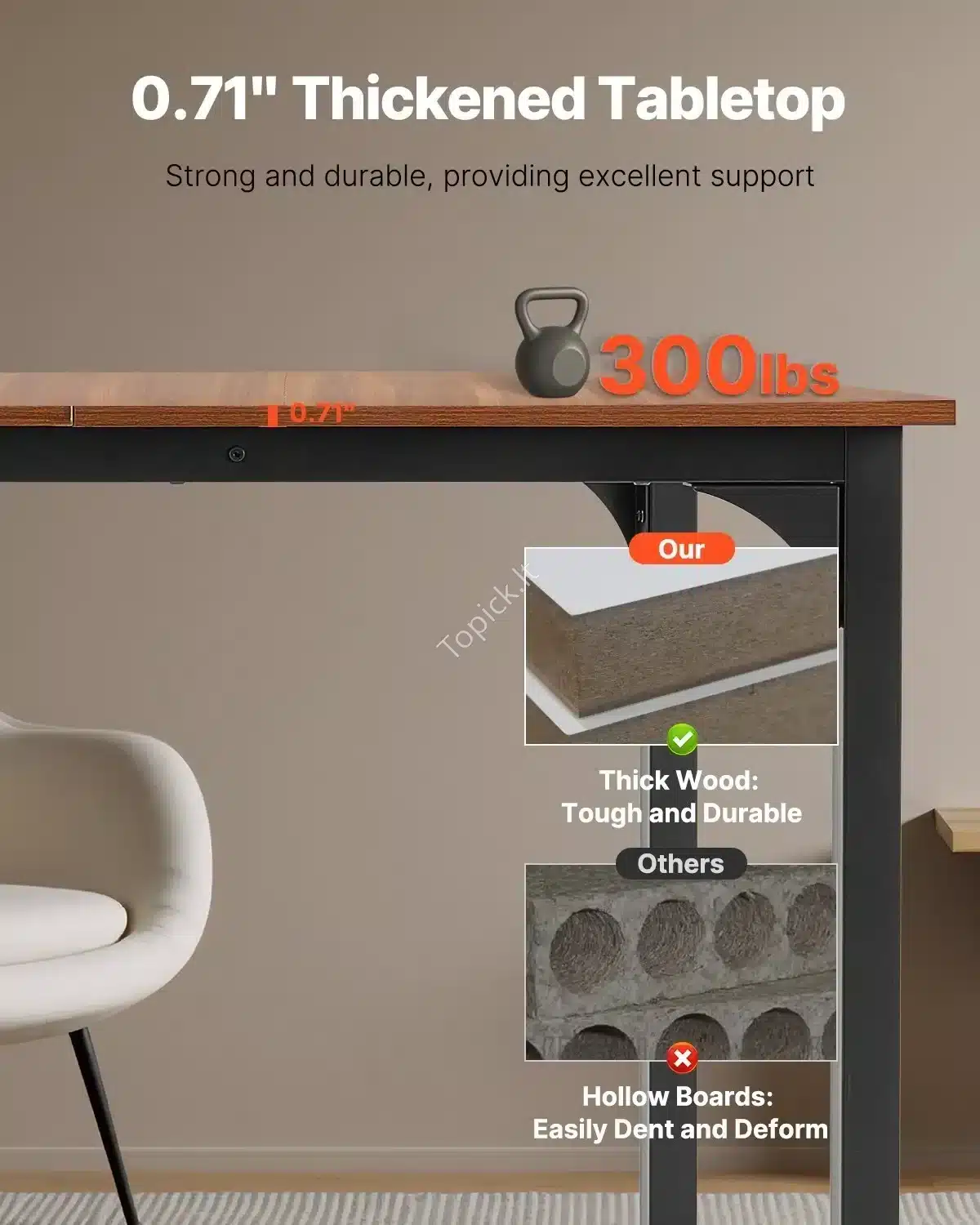 - Maksimalus Svoris: Stalas be vargo išlaiko iki 136,1 kg svorio!