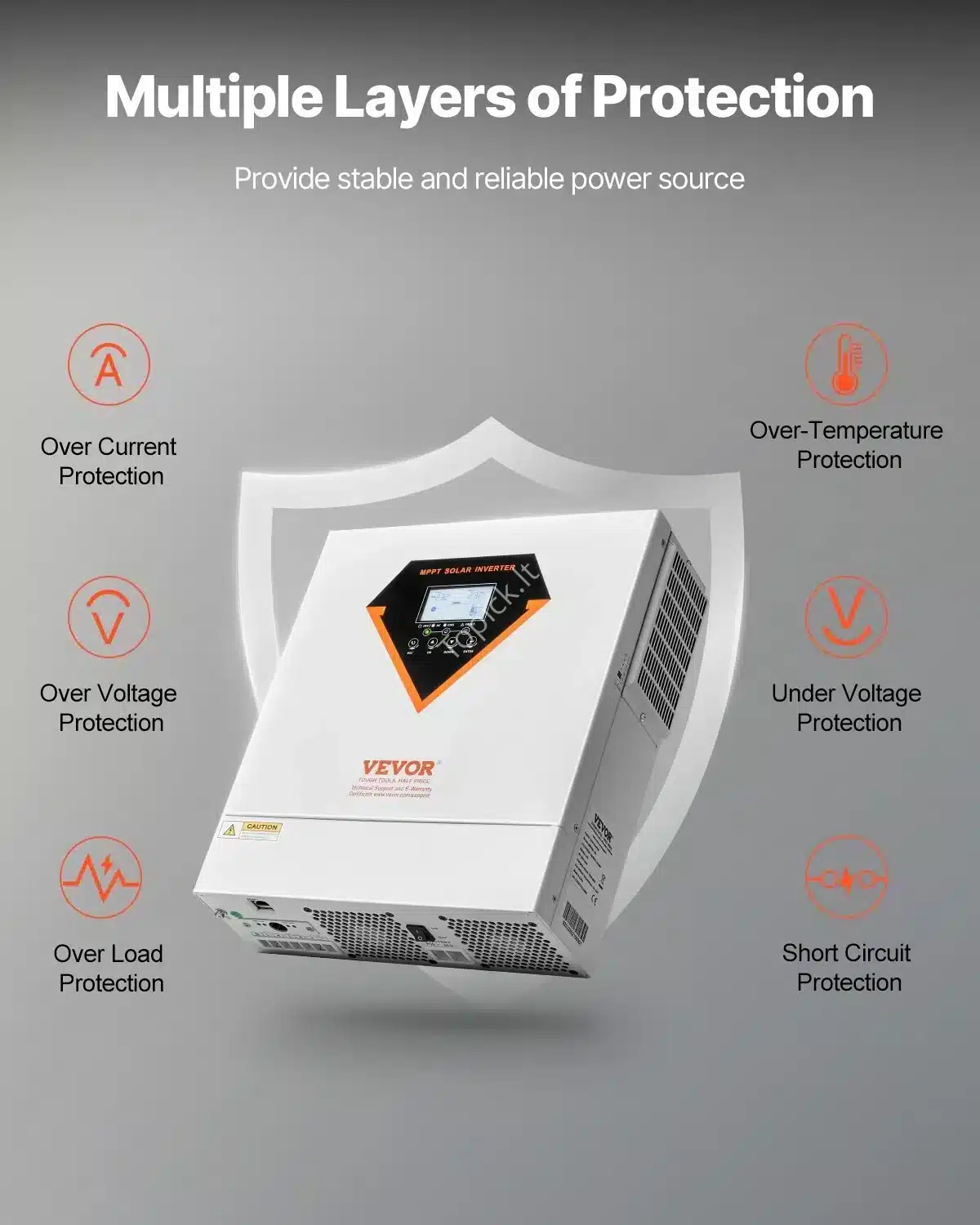 Su šiuo inverteriu gauni ne tik galią, bet ir ramybę, kad tavo elektros sistema visada bus apsaugota ir optimizuota.