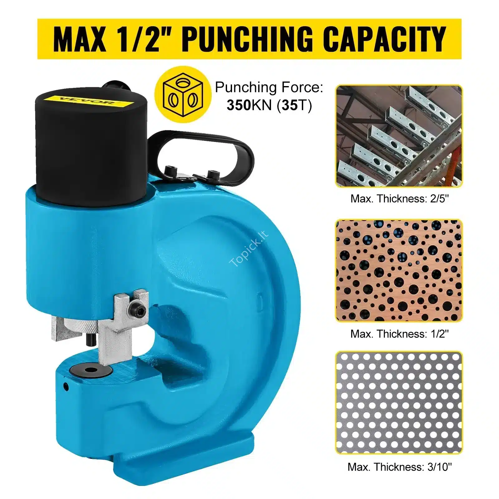 • Didelis Galingumas: Net 35T hidraulinė jėga leidžia minimaliomis fizinėmis pastangomis pramušti skyles net ir storesnėse metalinėse plokštėse ar šynose.