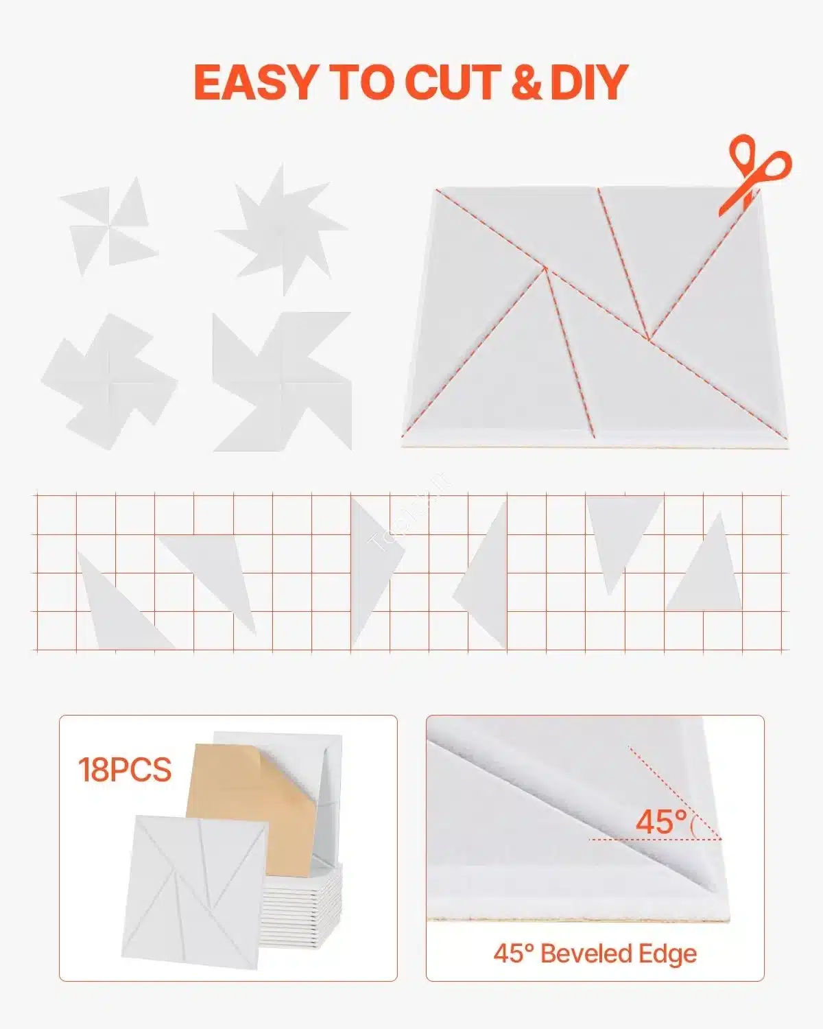 - Lengvas montavimas: Plokštės yra lipnios, su tvirtais 3M klijais, todėl jas lengva montuoti be jokių įrankių.