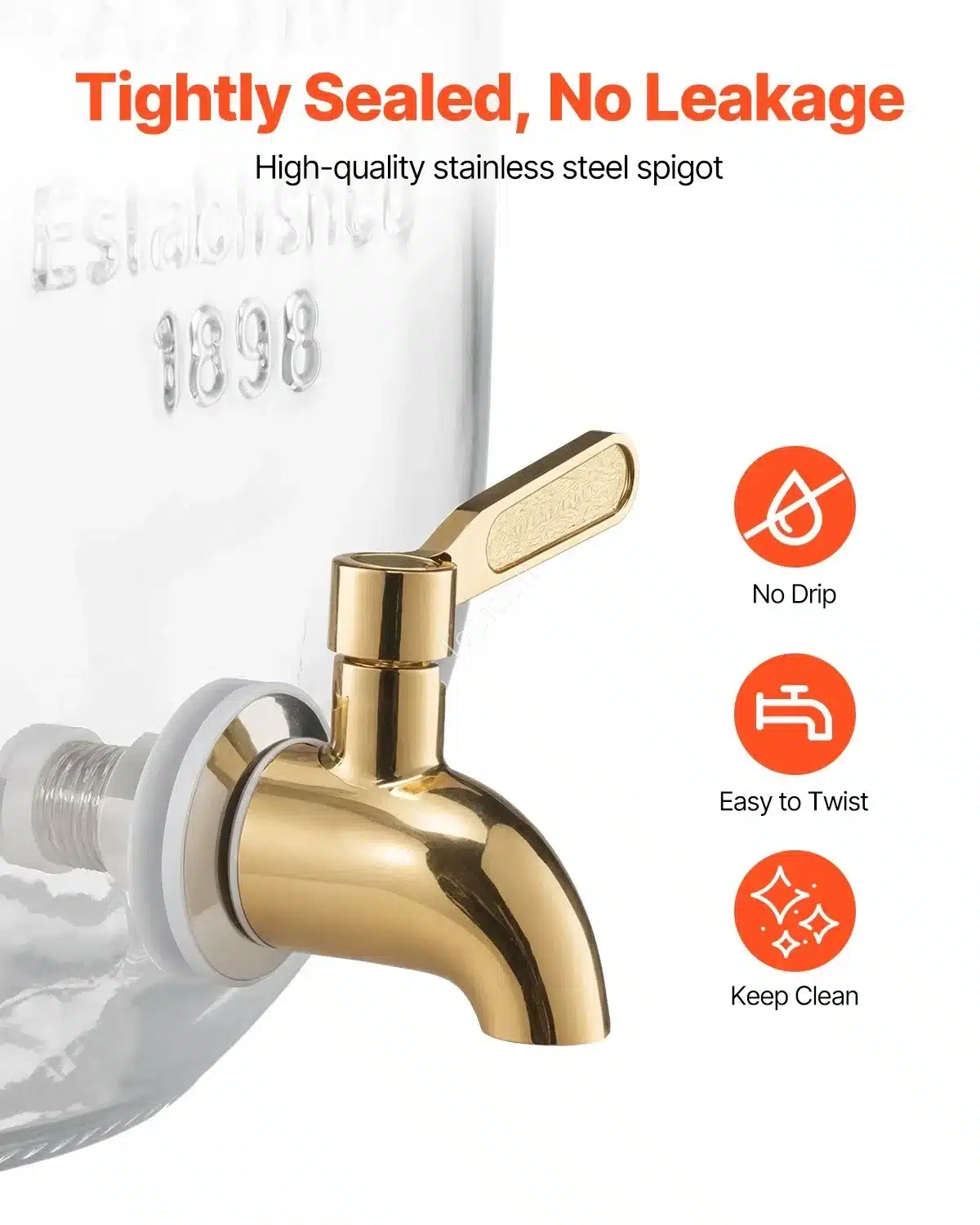 Įmontuotas nerūdijančio plieno čiaupas su spyruokliniu mechanizmu užtikrina sklandų gėrimų išleidimą be varvėjimo, išlaikant švarą ir tvarką.