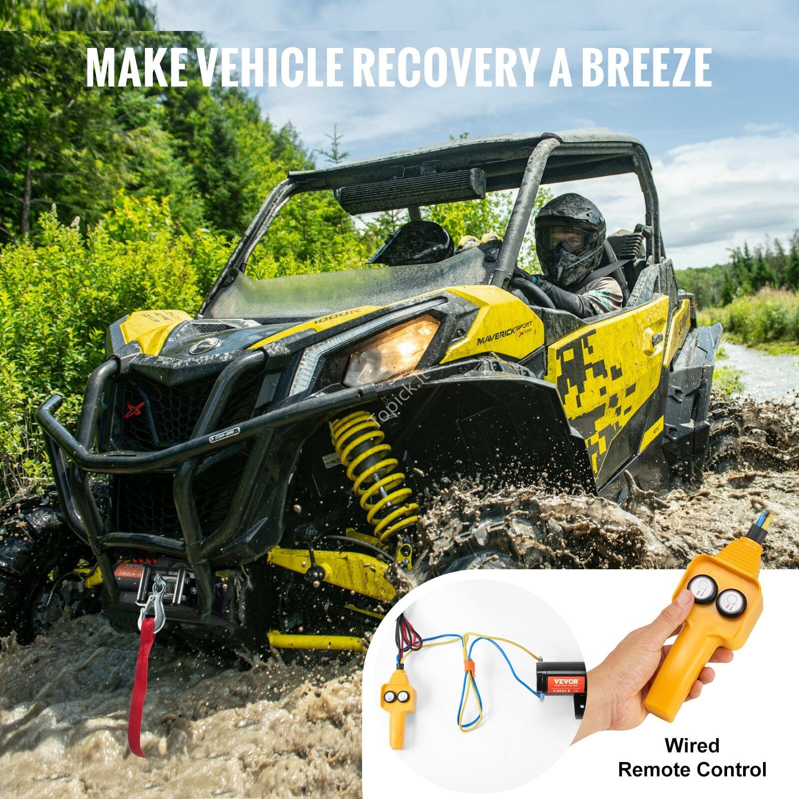 12 V elektrinis vinčas/gervė – iki 907 kg traukos jėga, su plieniniu 7–gyslų trosu ir laidiniu valdymu