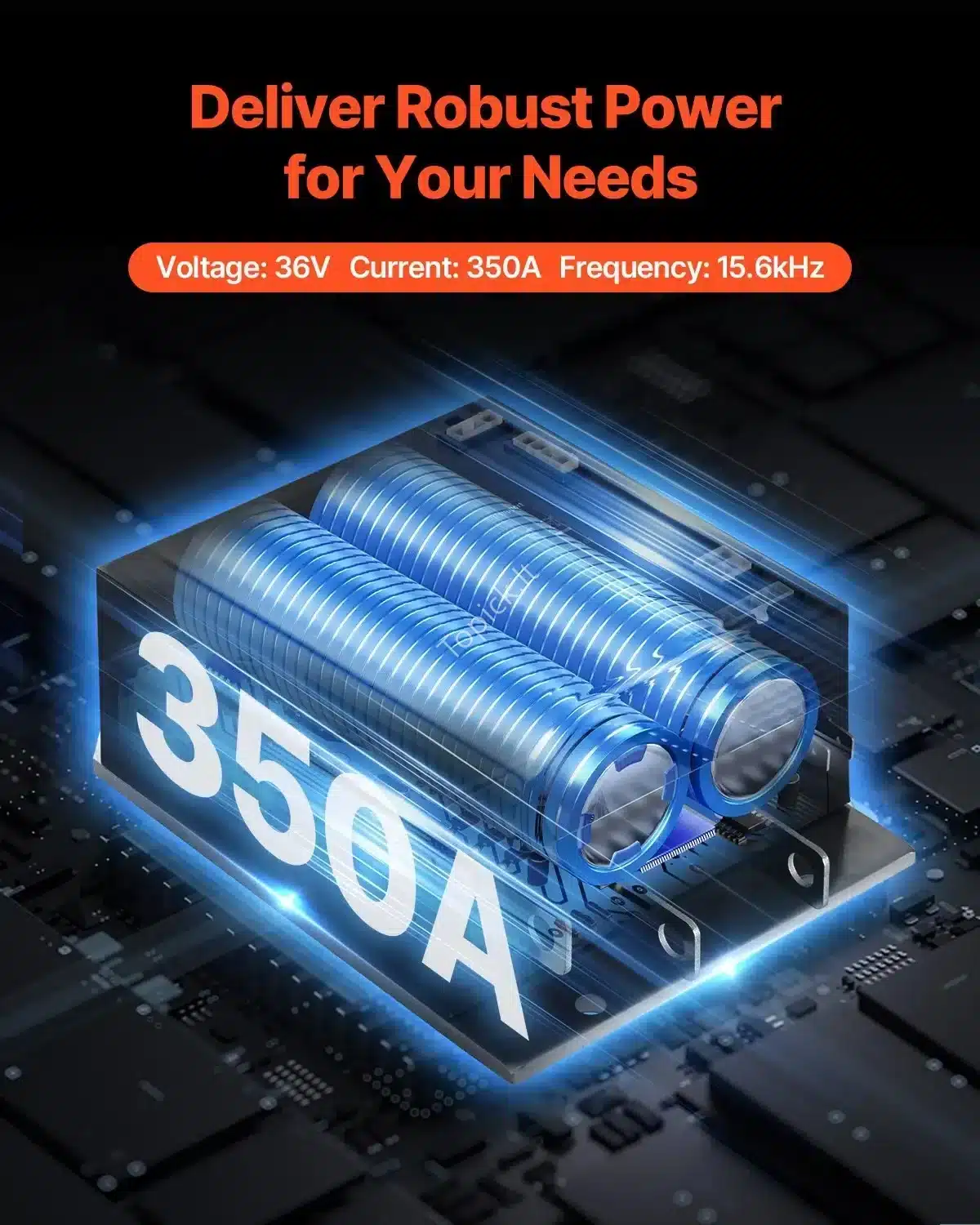 - Didelė Galia ir Sukimo Momentas: 350A srovė užtikrina greitą startą ir sklandų pagreitį. Didesnė srovė ypač naudinga važiuojant į kalnus, nes suteikia daugiau galios (sukimo momento).