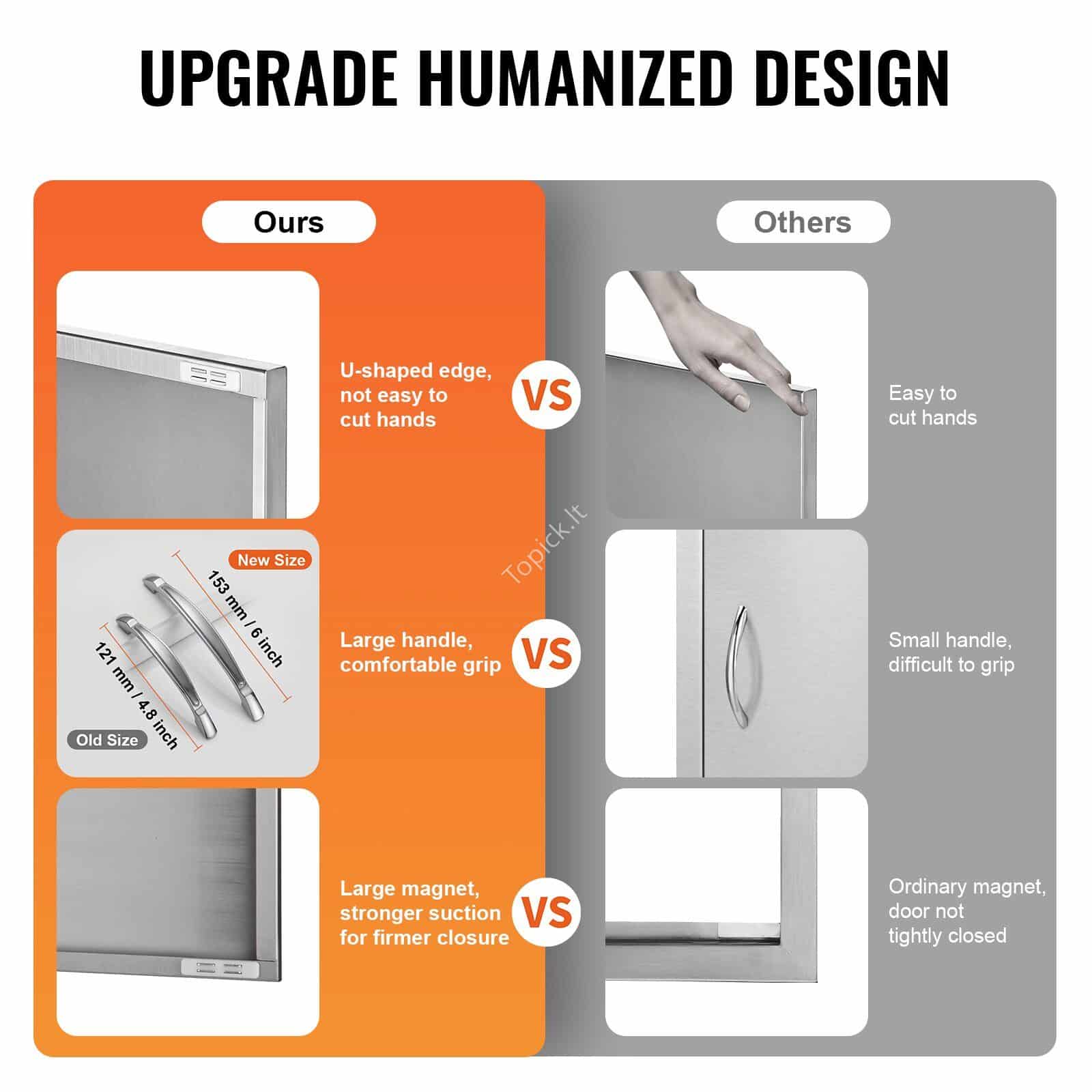 Šios durys puikiai tinka naudoti lauko virtuvėse, grilio salose, lauko spintelėse ir kitose lauko erdvėse. Jos ne tik funkcionalios, bet ir pagerina bendrą jūsų lauko virtuvės estetiką.