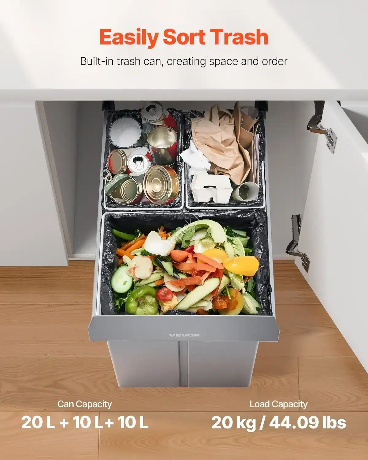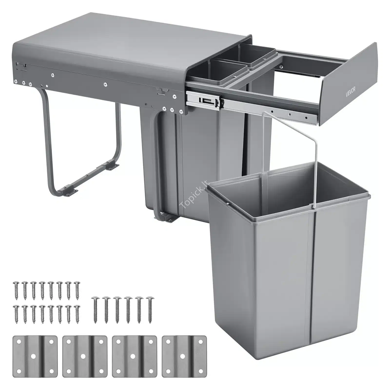 Ieškote sprendimo, kaip tvarkingai ir higieniškai rūšiuoti šiukšles virtuvėje? 🗑️ Šis ištraukiamų šiukšliadėžių rinkinys yra puikus pasirinkimas! Jis puikiai telpa po spintelės stalviršiu, o trijų konteinerių dizainas leidžia lengvai atskirti atliekas. ♻️