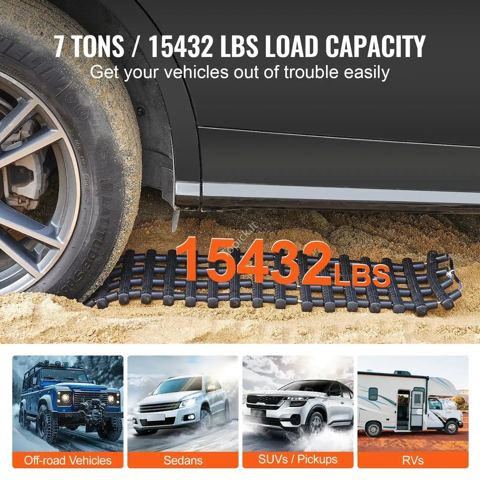 - Universalumas: Neslystantis paviršius su specialia tekstūra užtikrina maksimalų sukibimą su padangomis.