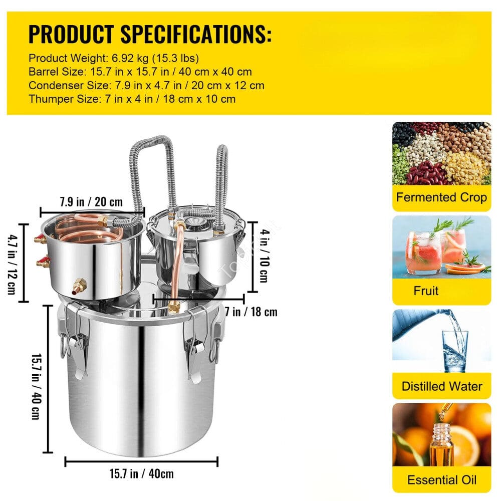 Įvairių stipriųjų gėrimų ir vandens distiliatorius – 50 L – Nerūdijančio plieno su efektyvia recirkuliacijos pompa 🍷💧🔥