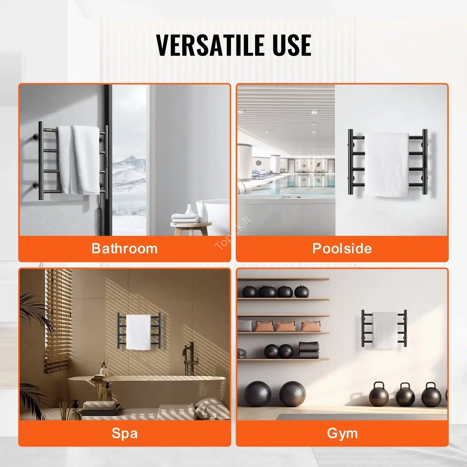 - Laikmatis: Patogus 1–8 valandų laikmatis leidžia taupyti energiją ir išlaikyti rankšluosčius šiltus tik tada, kai jums reikia.