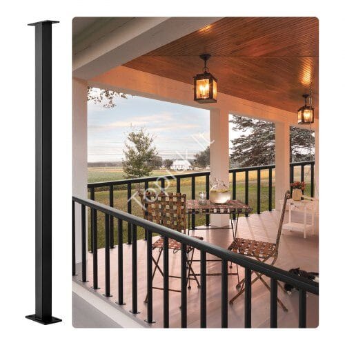 Metalinės turėklų atramos stulpelis, 91 x 4 x 4 cm, be skylių, juodos spalvos, 1 vnt.