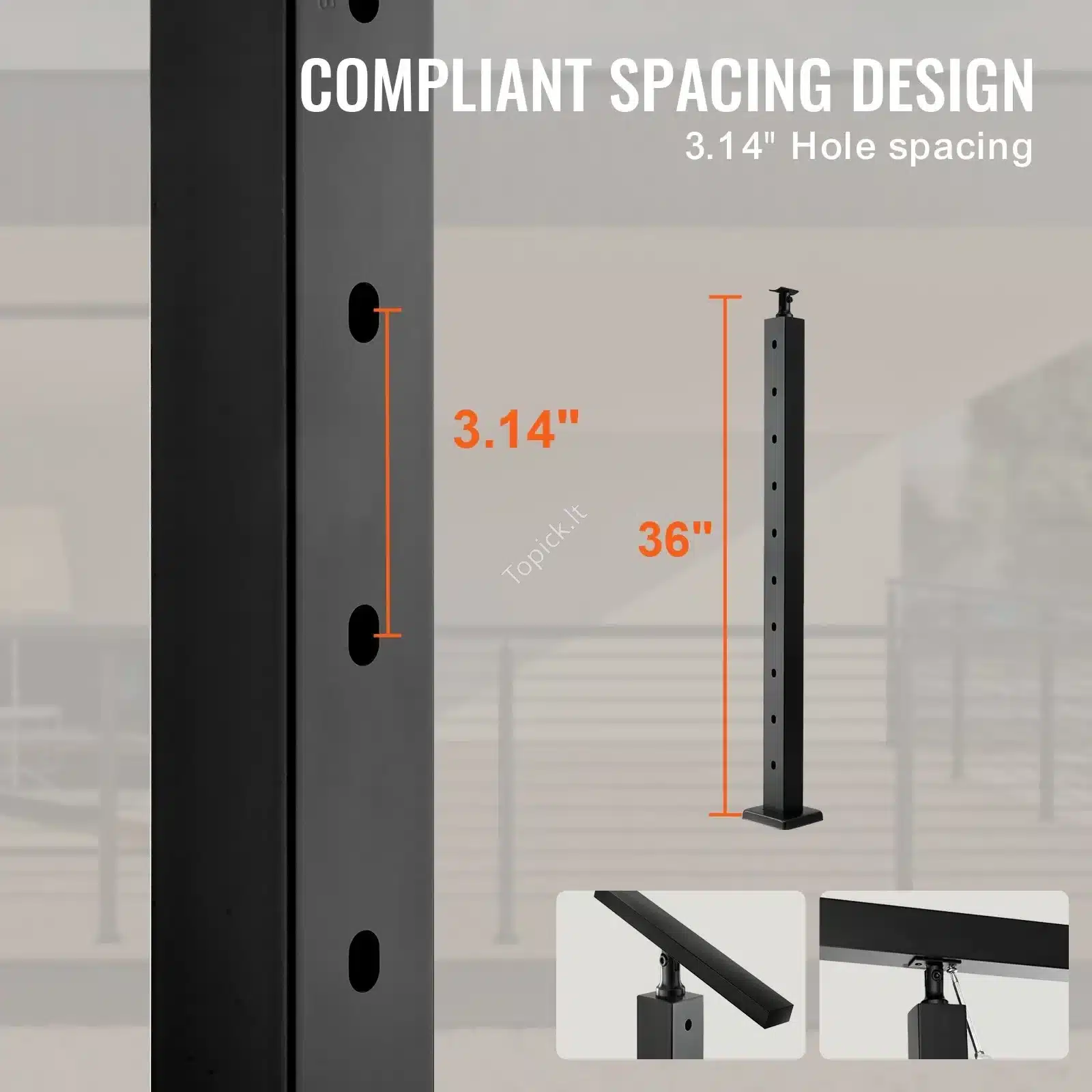 Aliuminio turėklų stulpelis 91,44 x 5,08 x 5,08 cm su kampiniu 30° skylės išdėstymu 🏗️✨