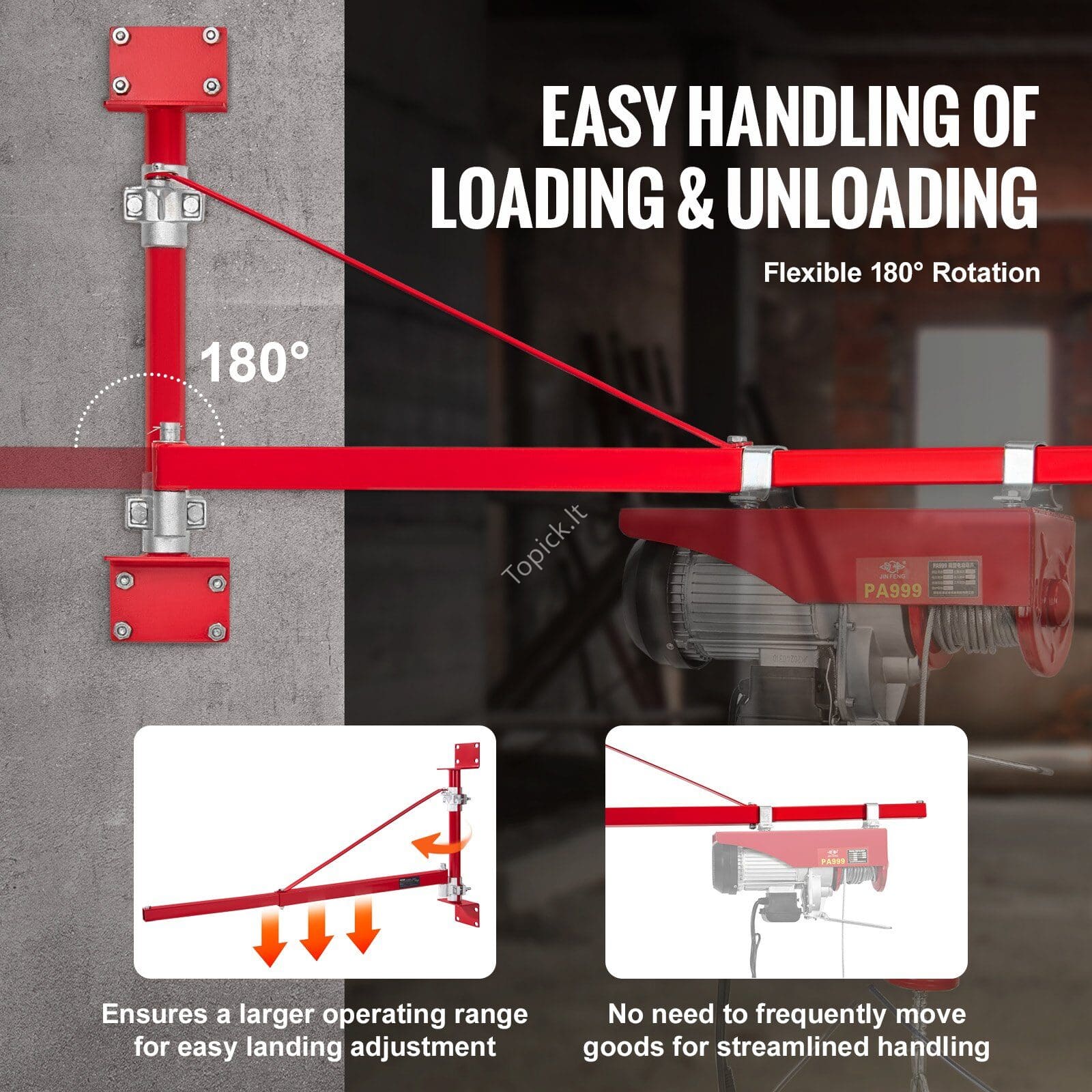 Elektrinė gervės laikiklio svirtis 300 kg | Tvirtas plieninis laikiklis su pasukamu mechanizmu