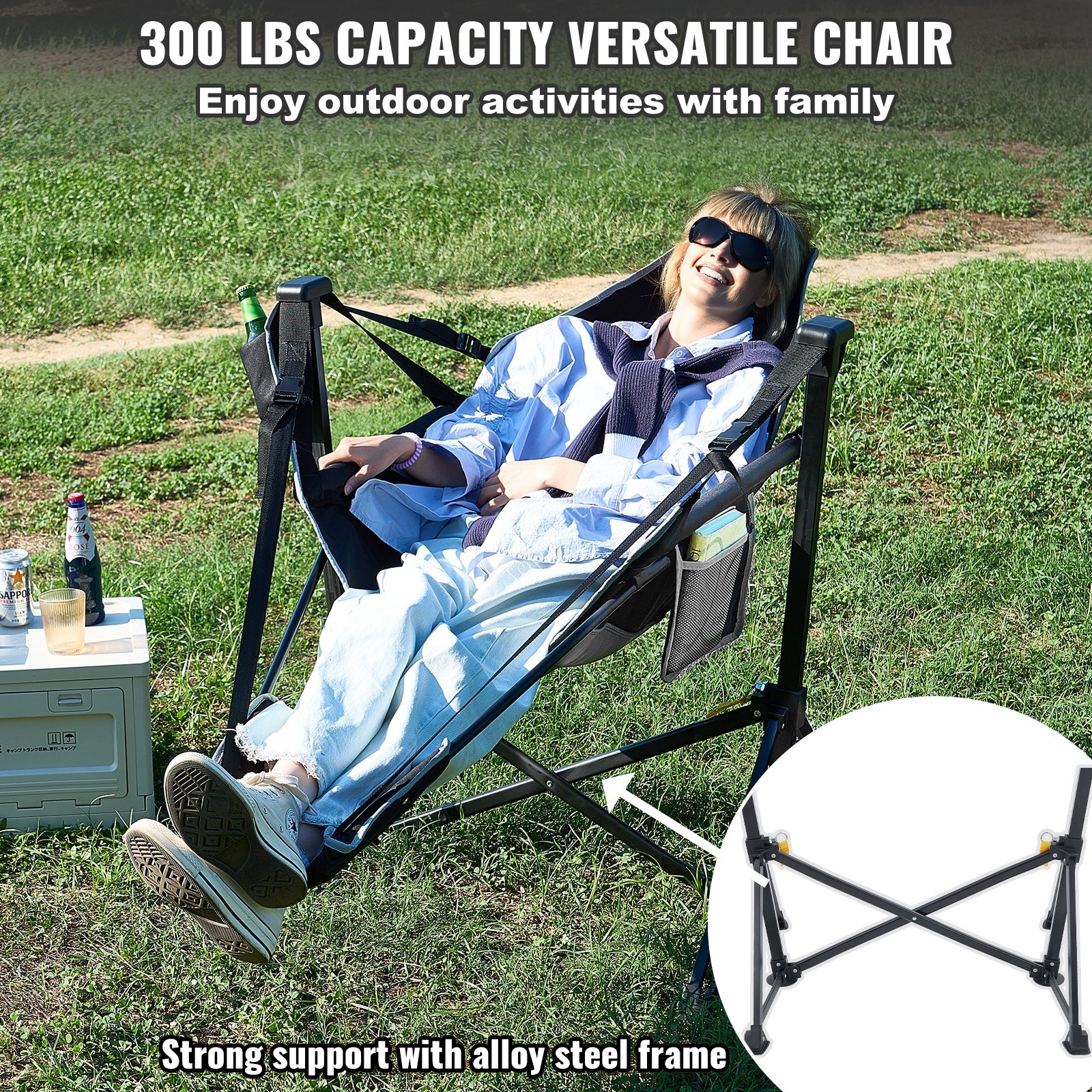 Pagamintas iš legiruotojo plieno, kempingo kėdės rėmas yra tvirtas ir stabilus, su trikampiu atraminio pagrindo dizainu, kuris gali atlaikyti iki 300 svarų (136 kg). Patvarus 600D Oxford audinys ir miltelinis dažymas užtikrina ilgaamžiškumą ir atsparumą įvairiems lauko iššūkiams.