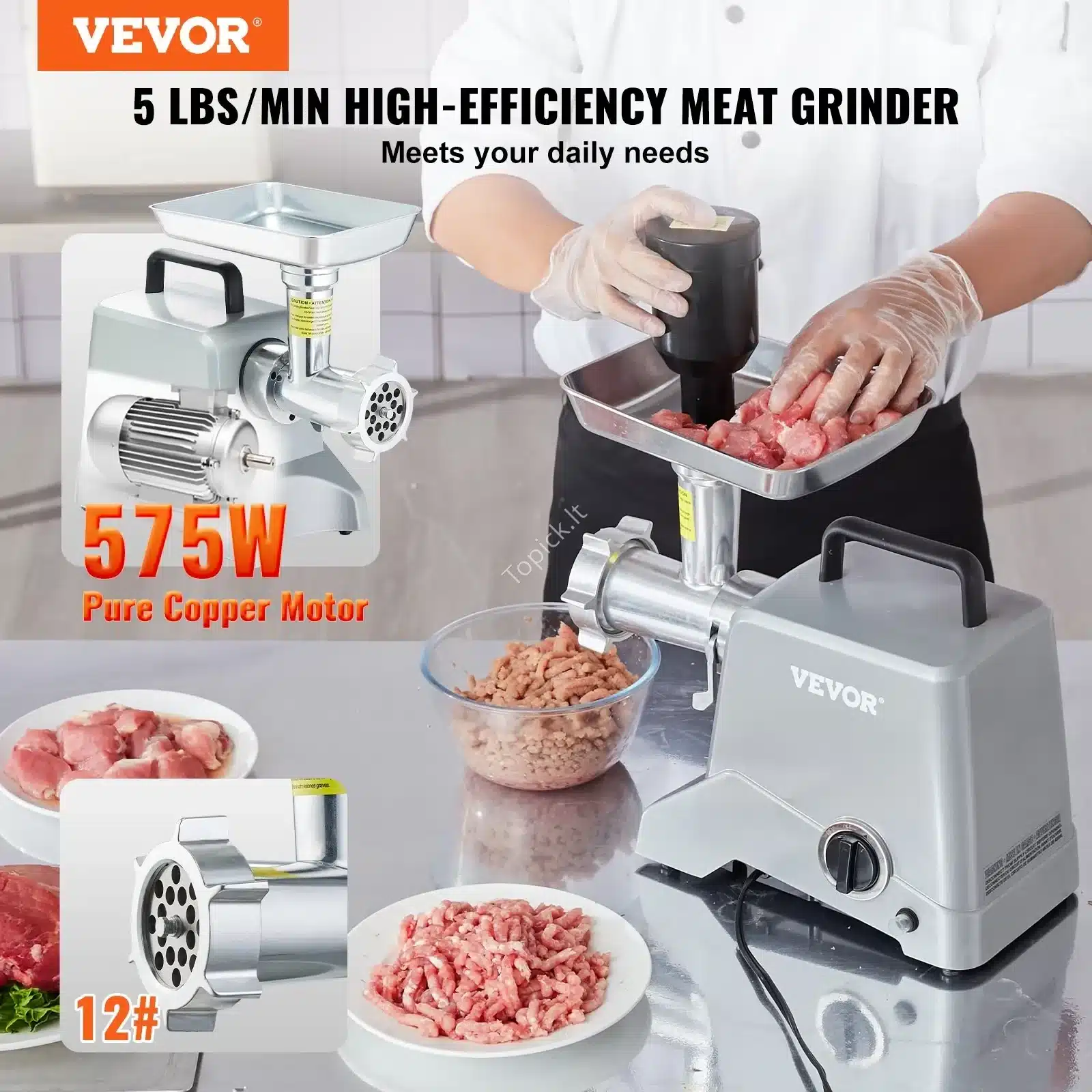 🔹 Galingas ir patikimas – šis elektrinis mėsos malūnas su 575 W nominalia galia ir iki 2,27 kg/min našumu puikiai tinka tiek namų, tiek mažos apimties komerciniam naudojimui.