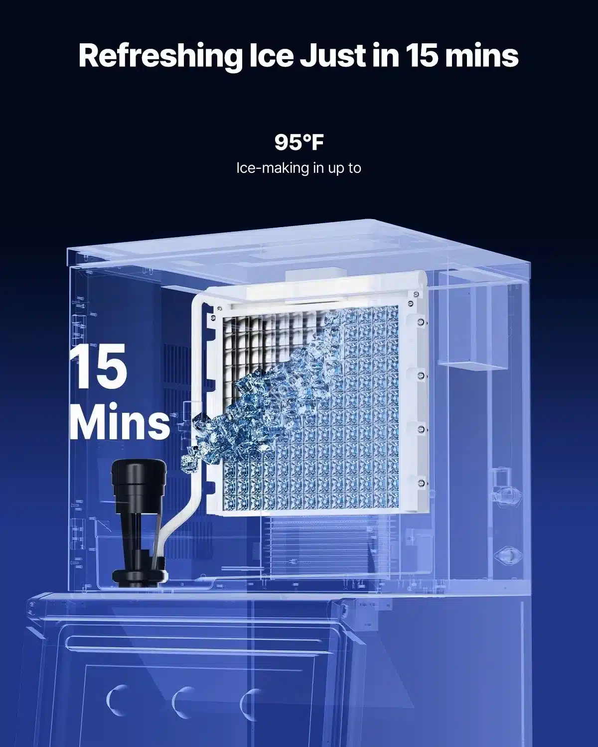 Automatinis išleidimas: Greitas ir efektyvus ledo išleidimas, lengvai užpildysite indus ar ledo dėžes.