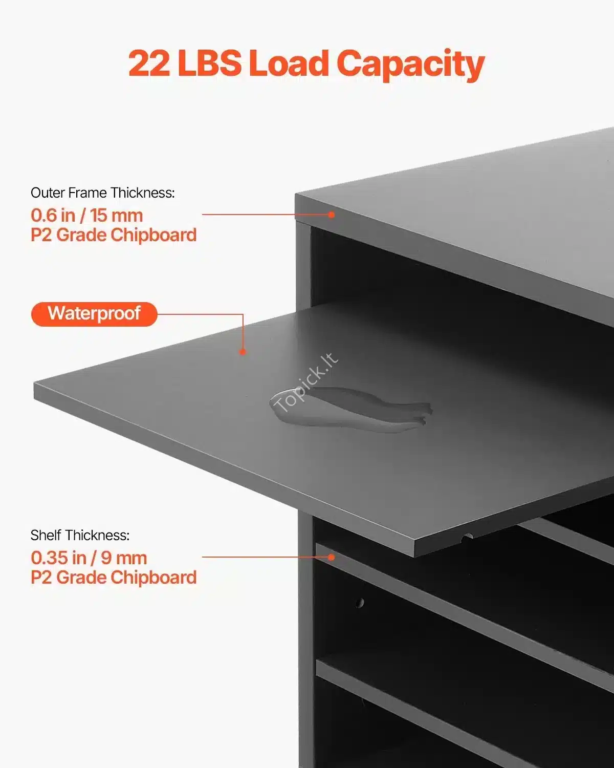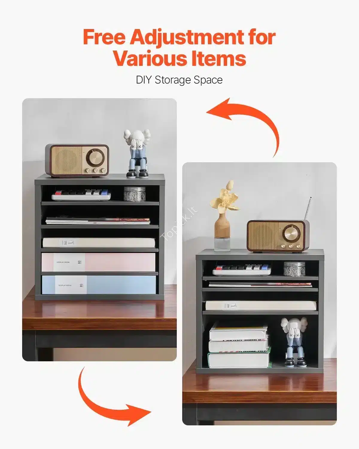 - Lankstus Išplanavimas: Kaip ir didesni broliai, šis organizatorius turi reguliuojamas lentynėles (nuo 2,5 iki 5,5 cm aukščio). Jei reikia didesnio skyriaus smulkiems kanceliarinėms prekėms ar storam segtuvui, tiesiog pakeisk pertvaros aukštį!